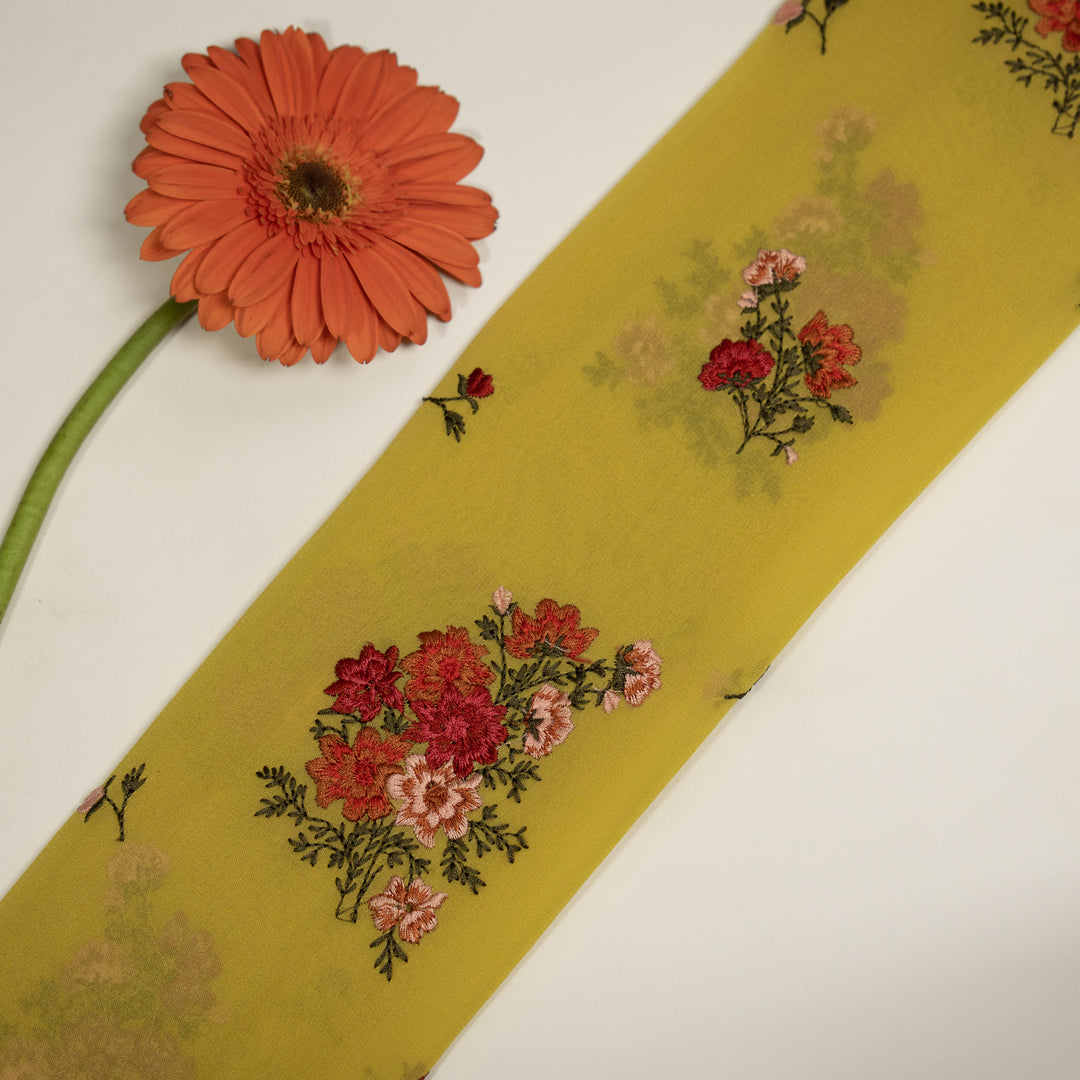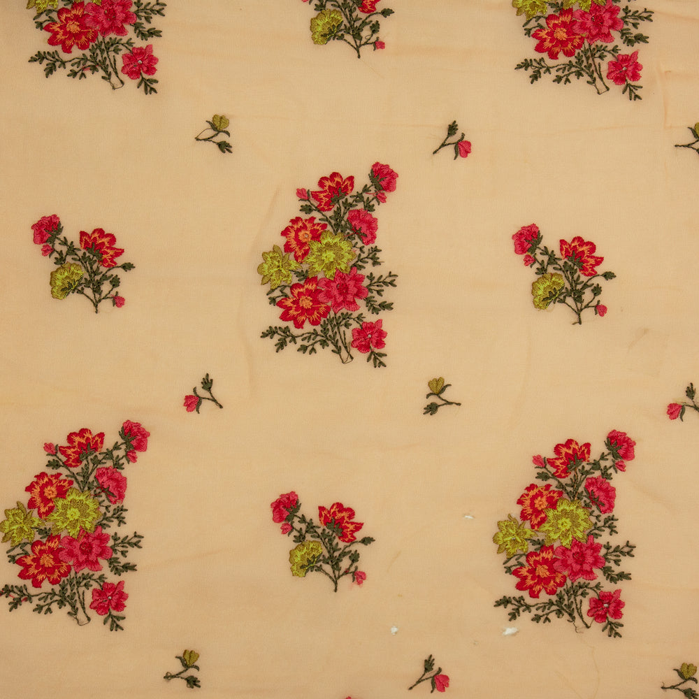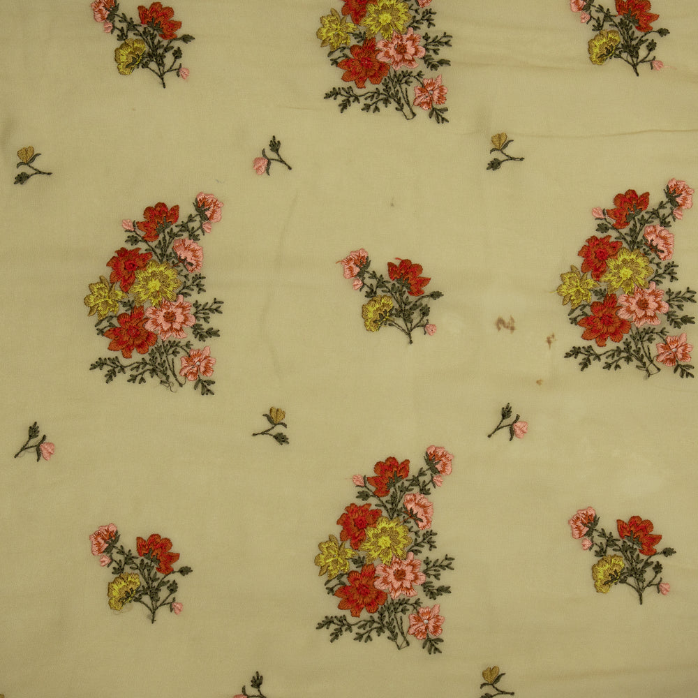 Aabroo Jaal on Beige Semi Raw Silk Embroidered Fabric