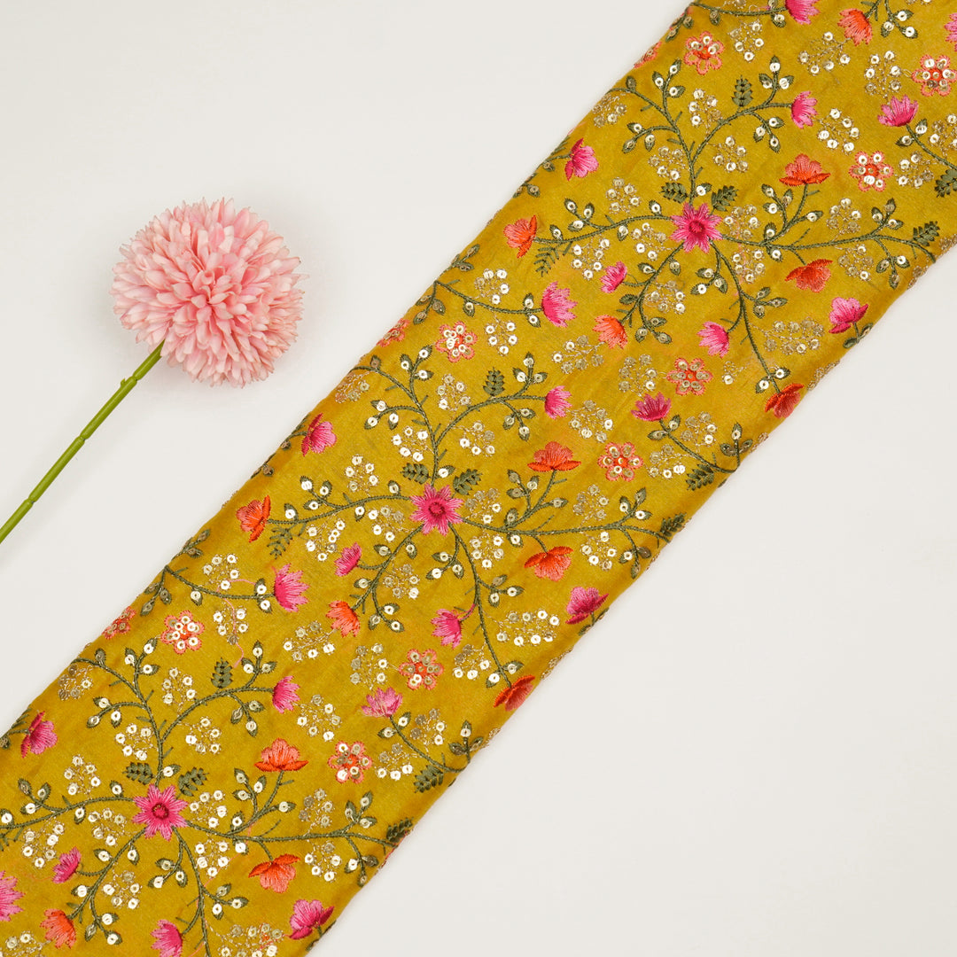 Zoey Buti on Lemon Cotton Silk Embroidered Fabric
