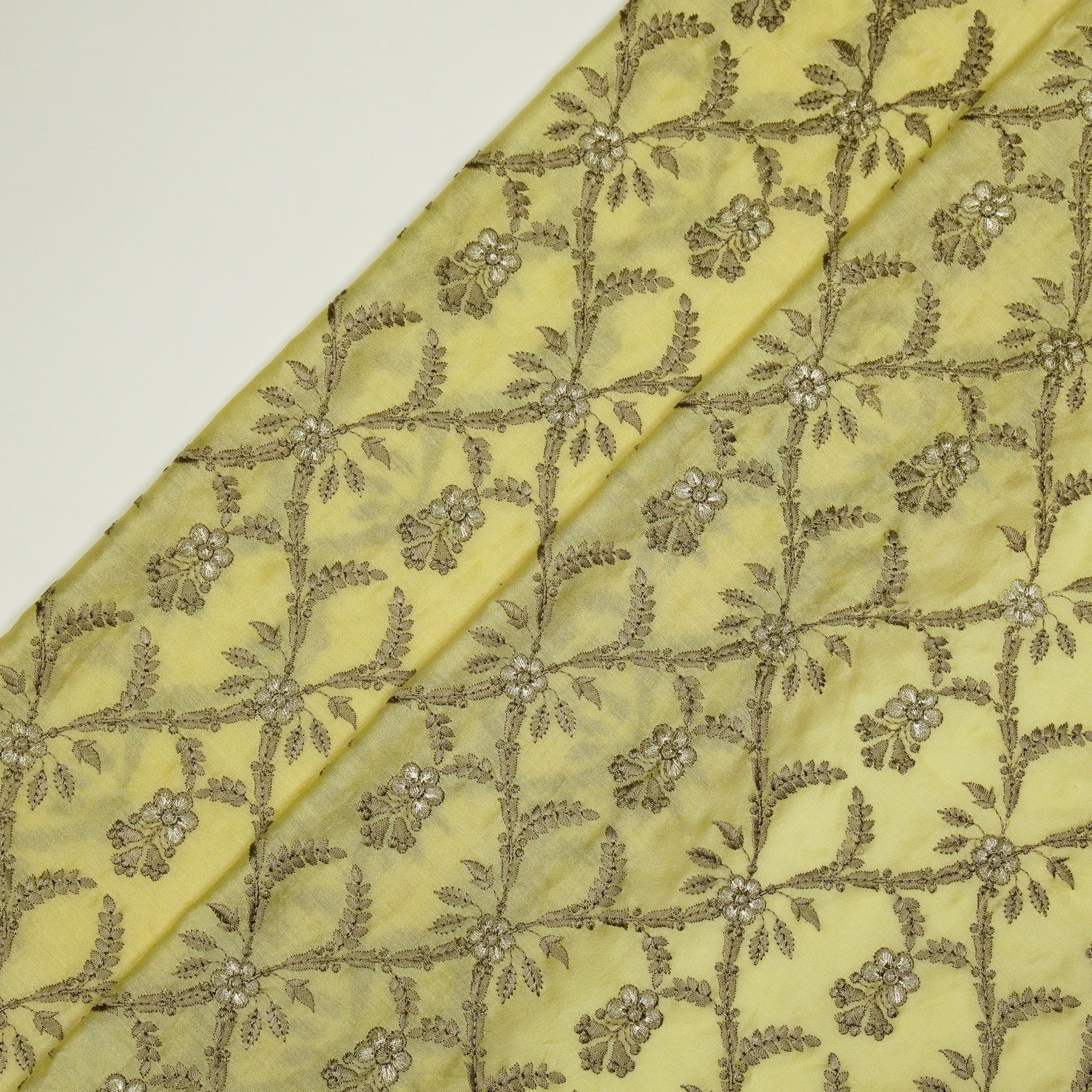 Trishika Jaal on Light Lemon Silk Chanderi Embroidered Fabric