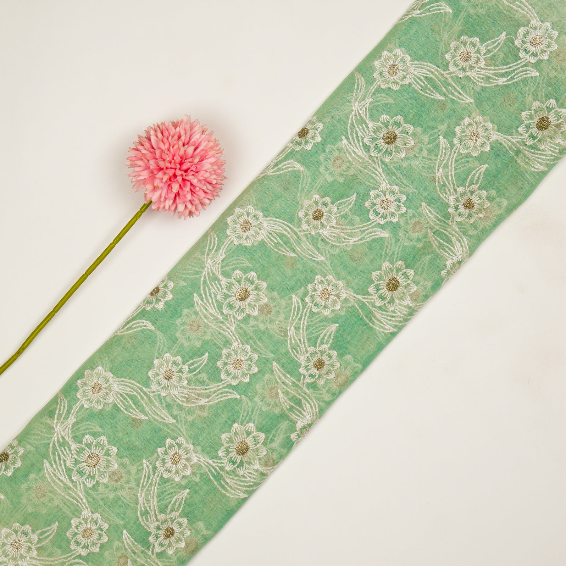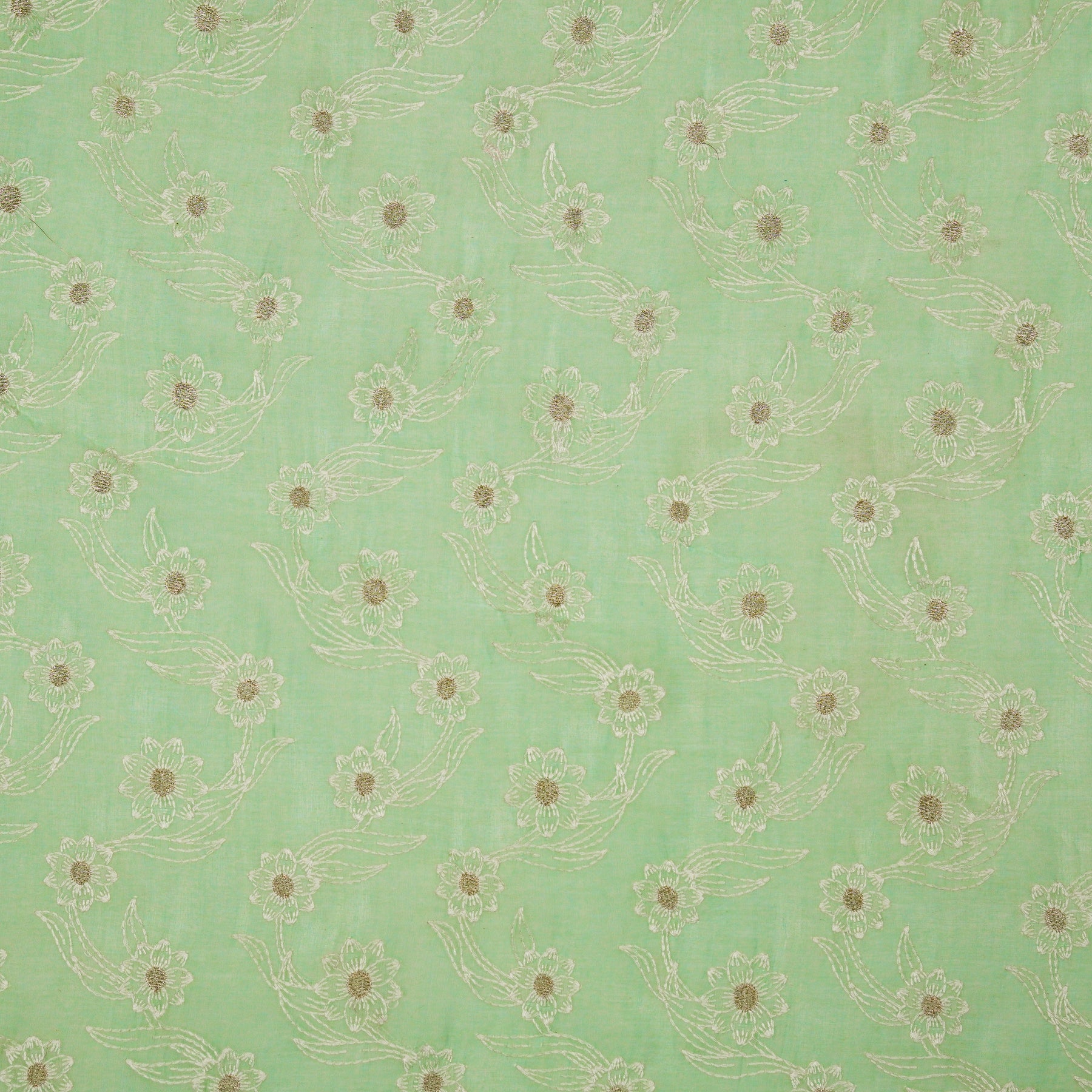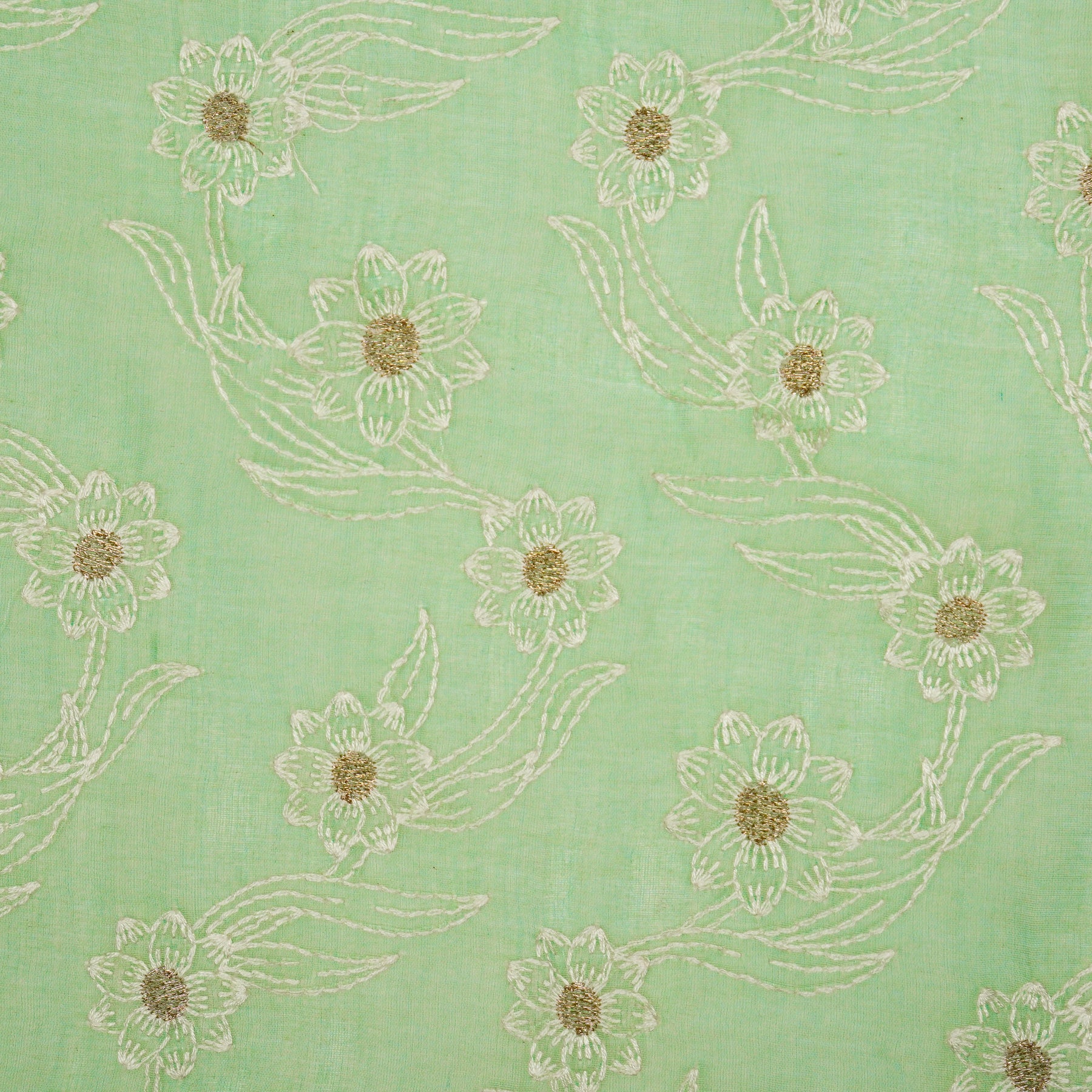 Alara Jaal on Mint Green Cotton Silk Embroidered Fabric