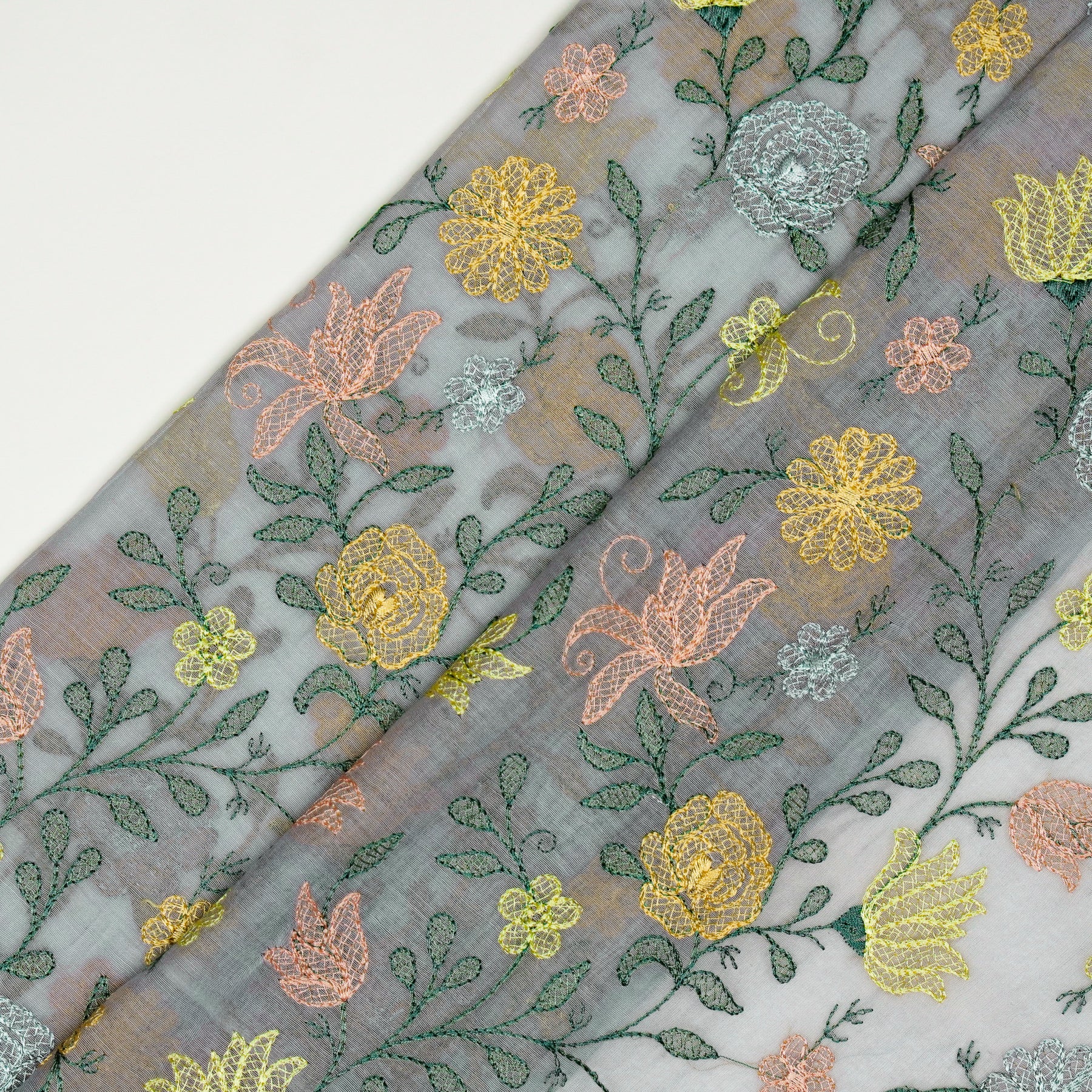 Amaira Jaal on Steel Grey Cotton Silk Embroidered Fabric
