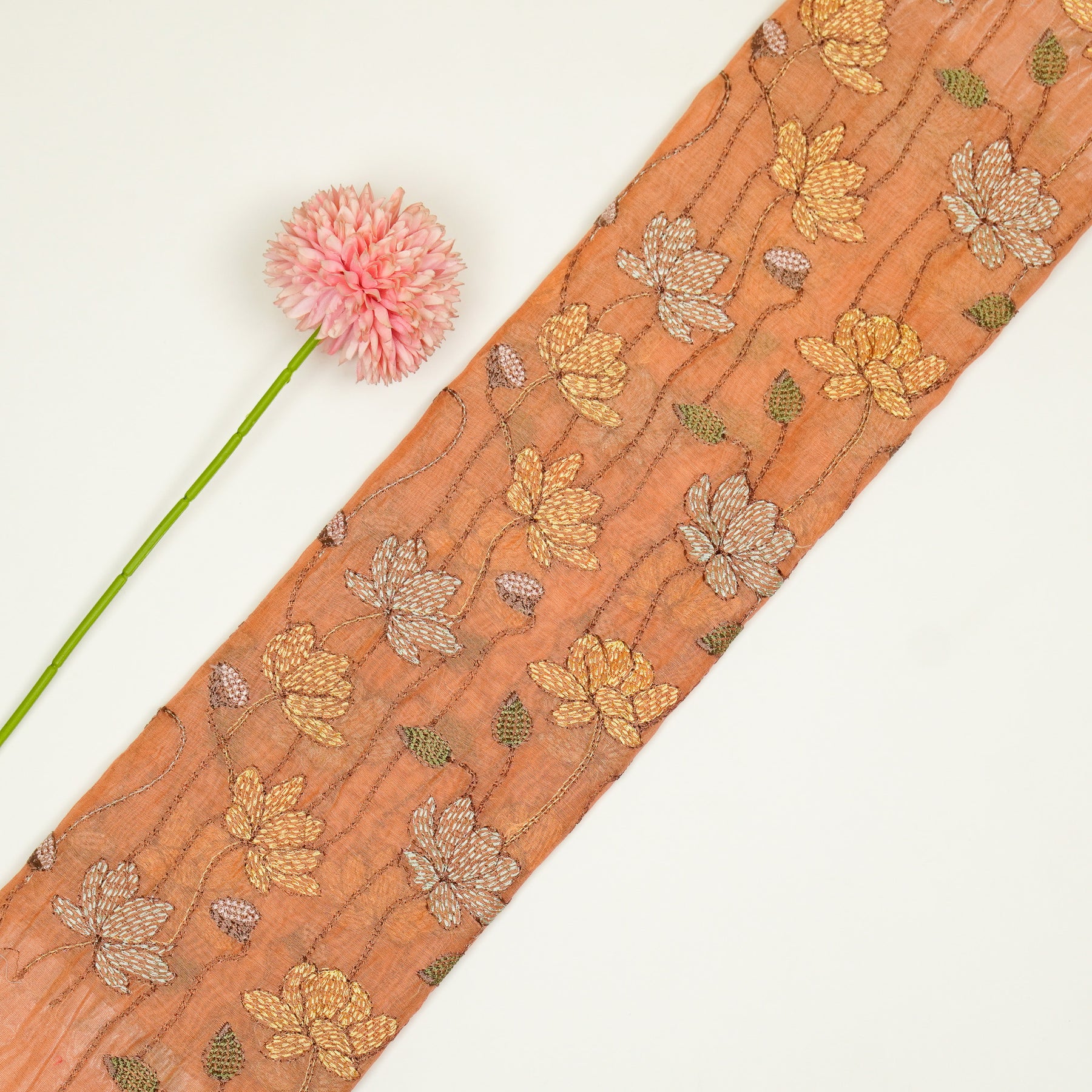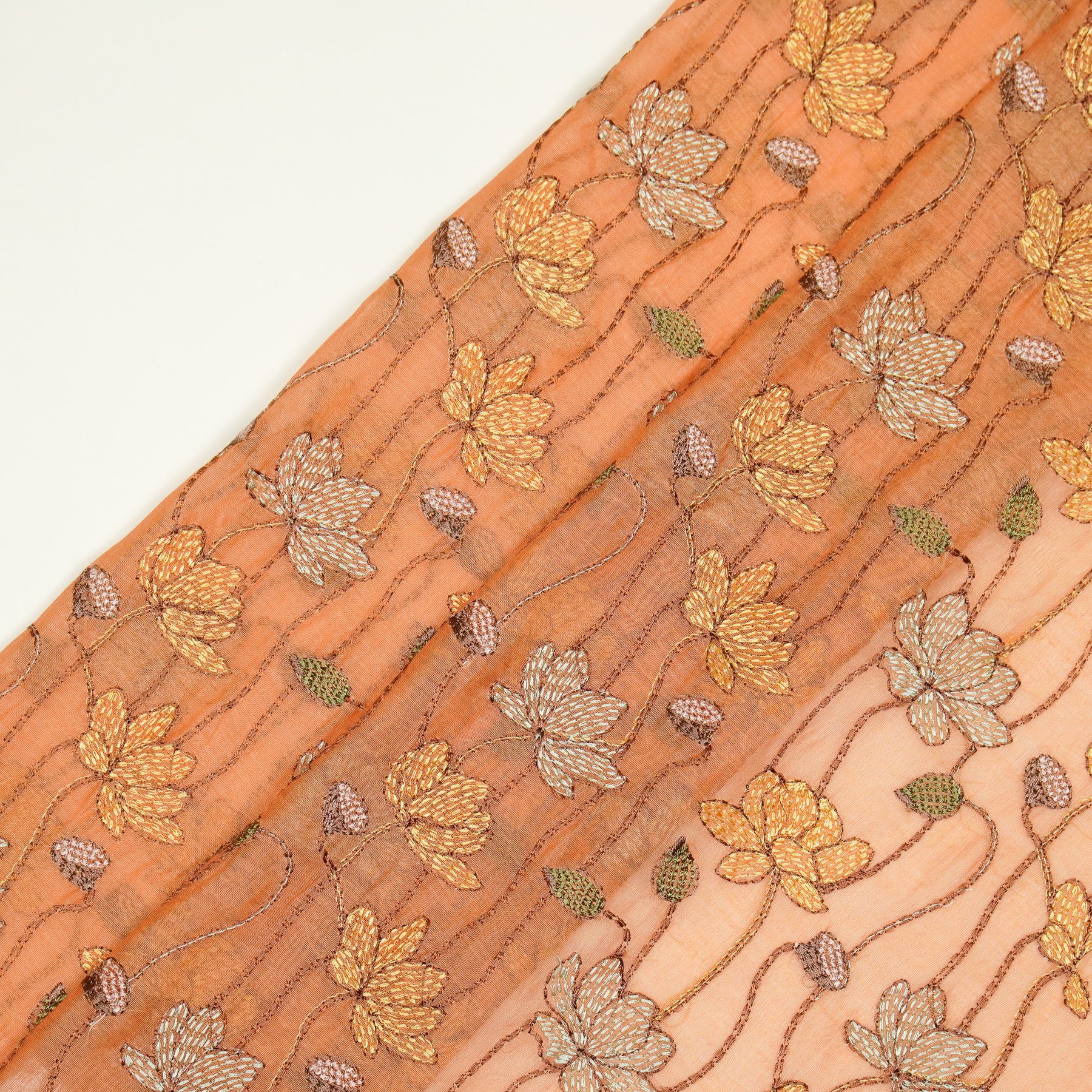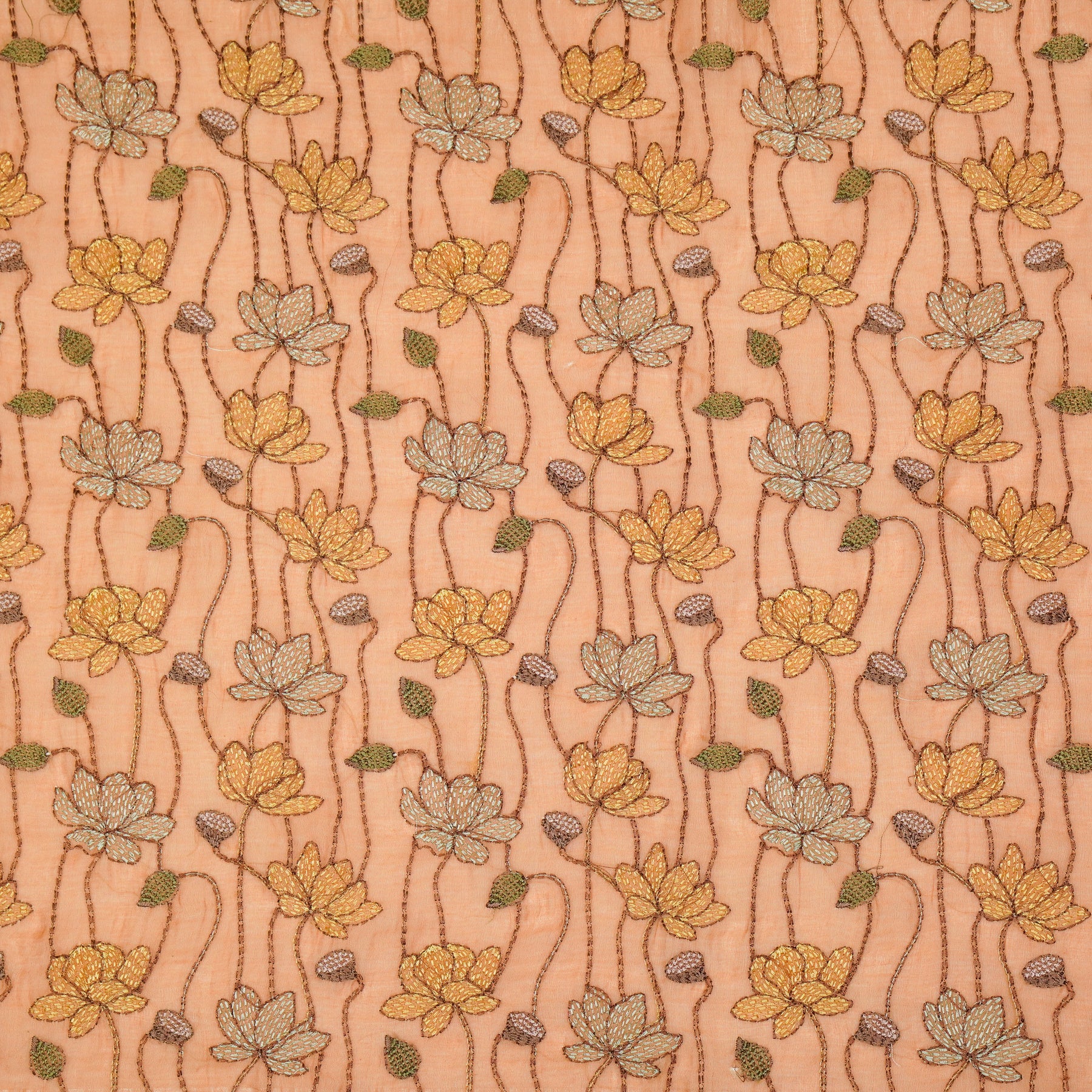 Raneem Jaal on Deep Peach Cotton Silk Embroidered Fabric
