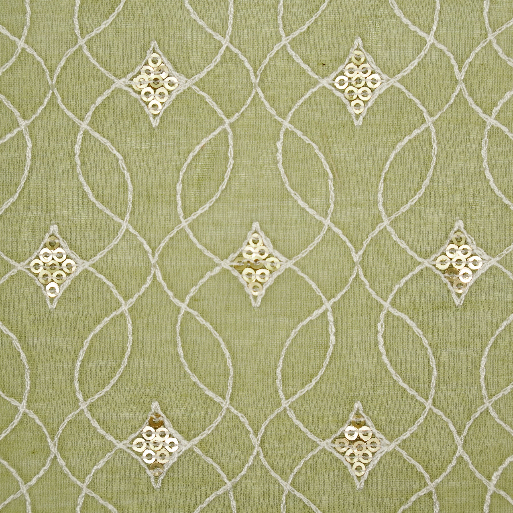 Vibha Jaal on Olive Green Cotton Silk Embroidered Fabric