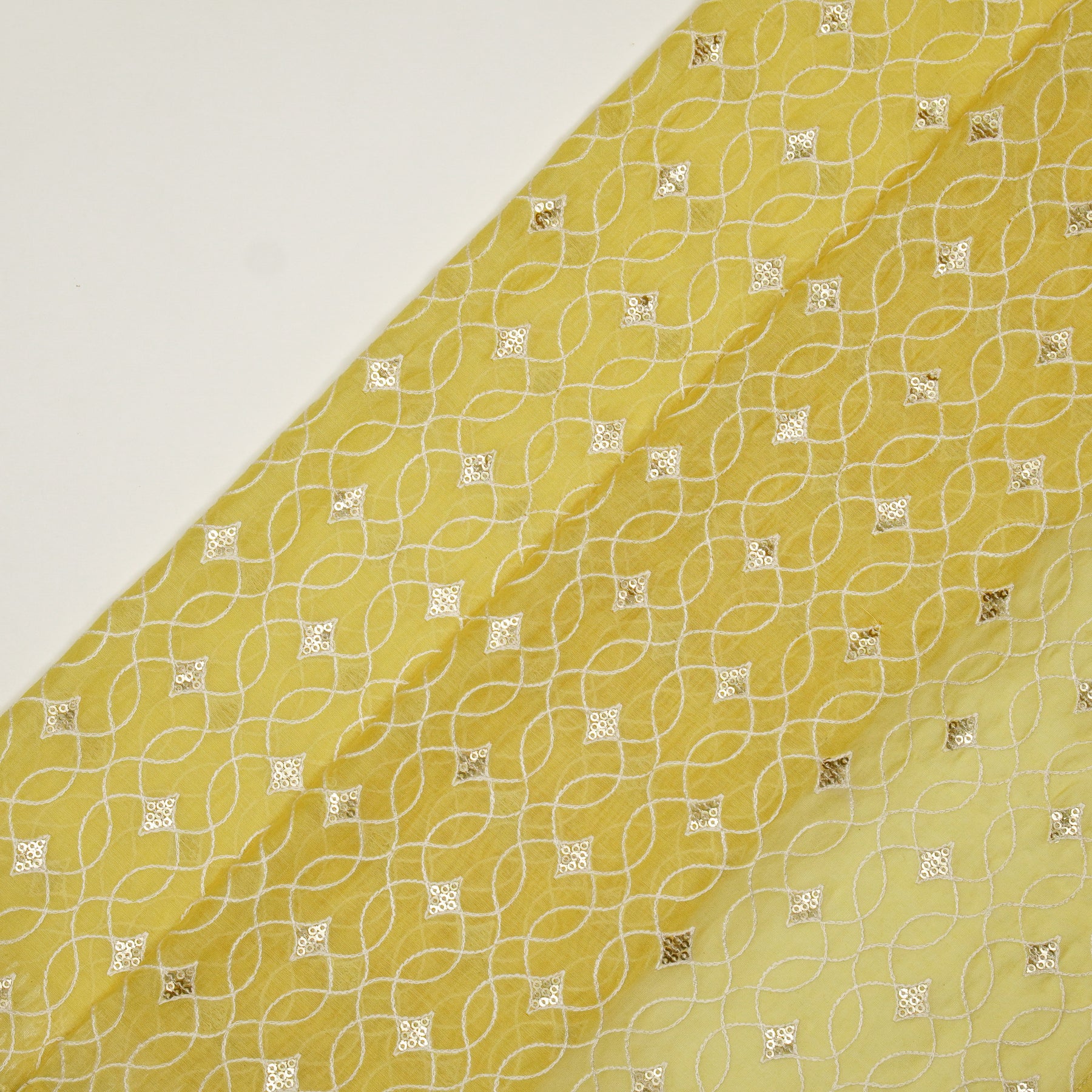 Vibha Jaal on Lemon Cotton Silk Embroidered Fabric