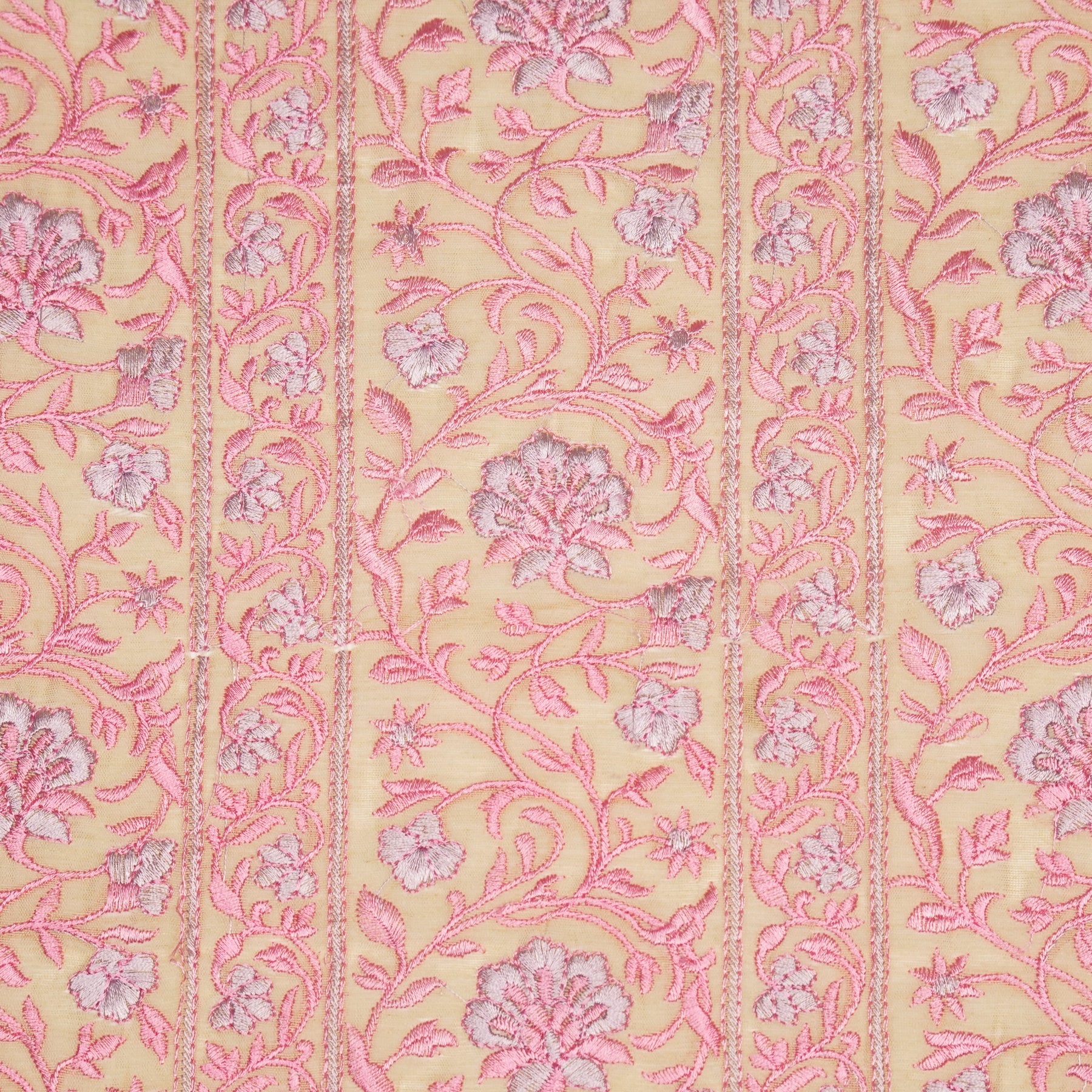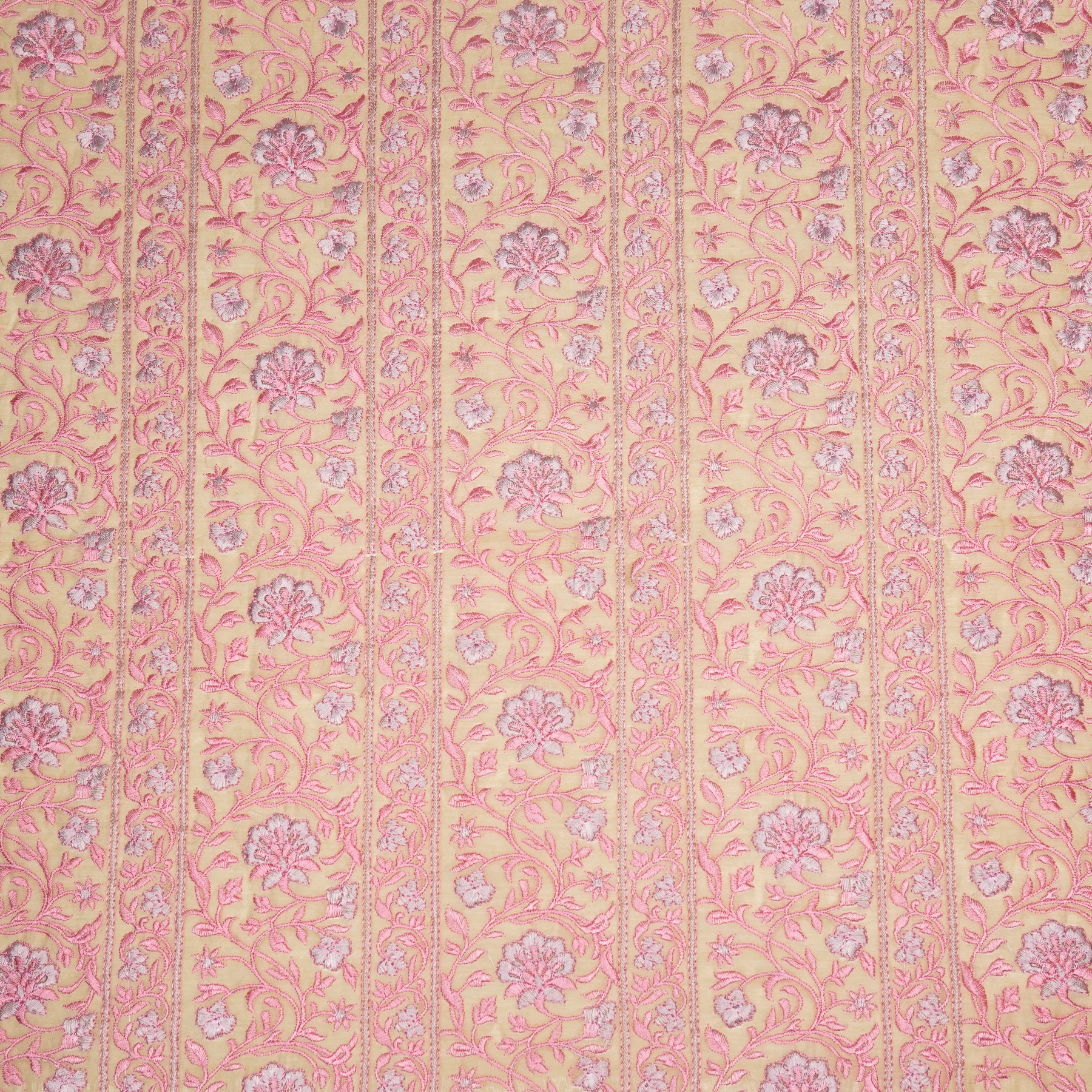 Shan Jaal on Cream/Gajari Cotton Silk Embroidered Fabric
