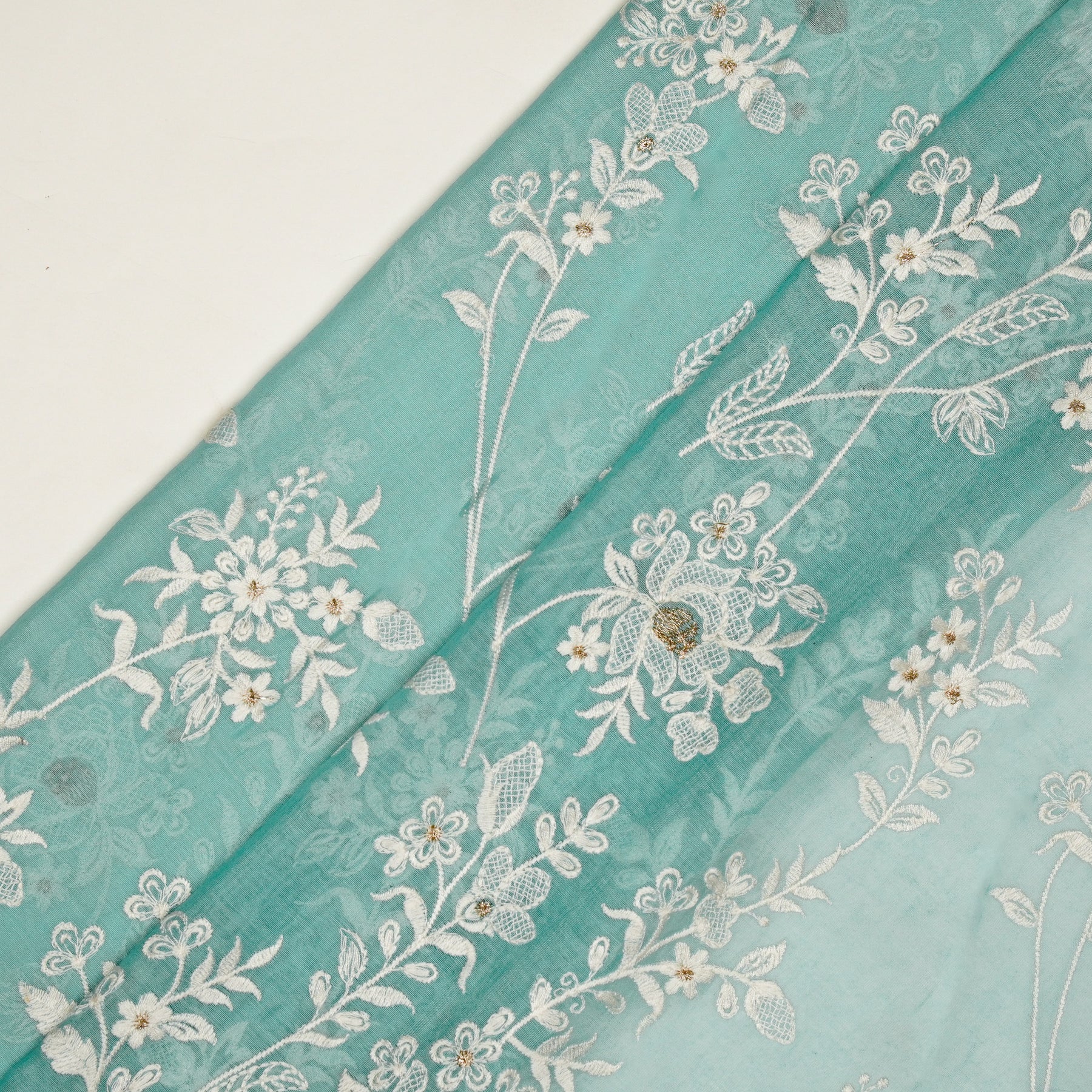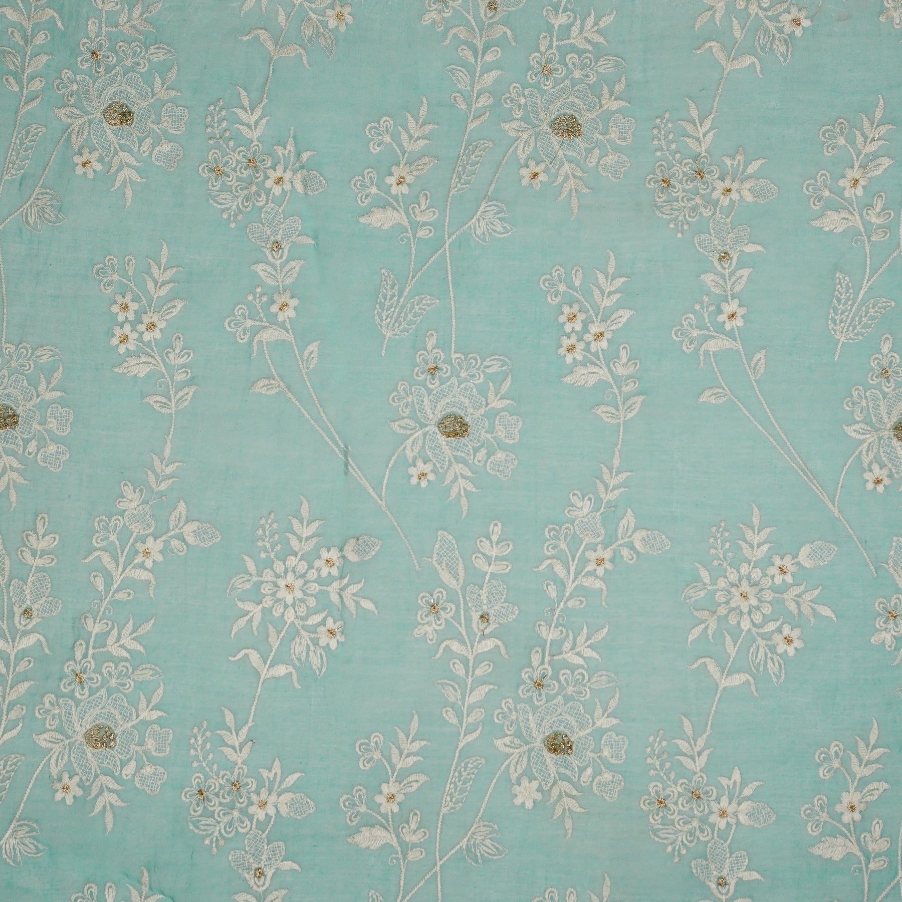 Shubhra Jaal on Turquoise Cotton Silk Embroidered Fabric