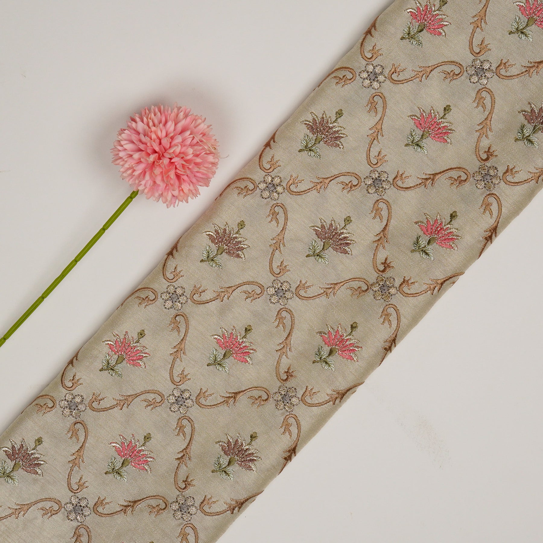 Anila Jaal on Cream Dola Silk Embroidered Fabric