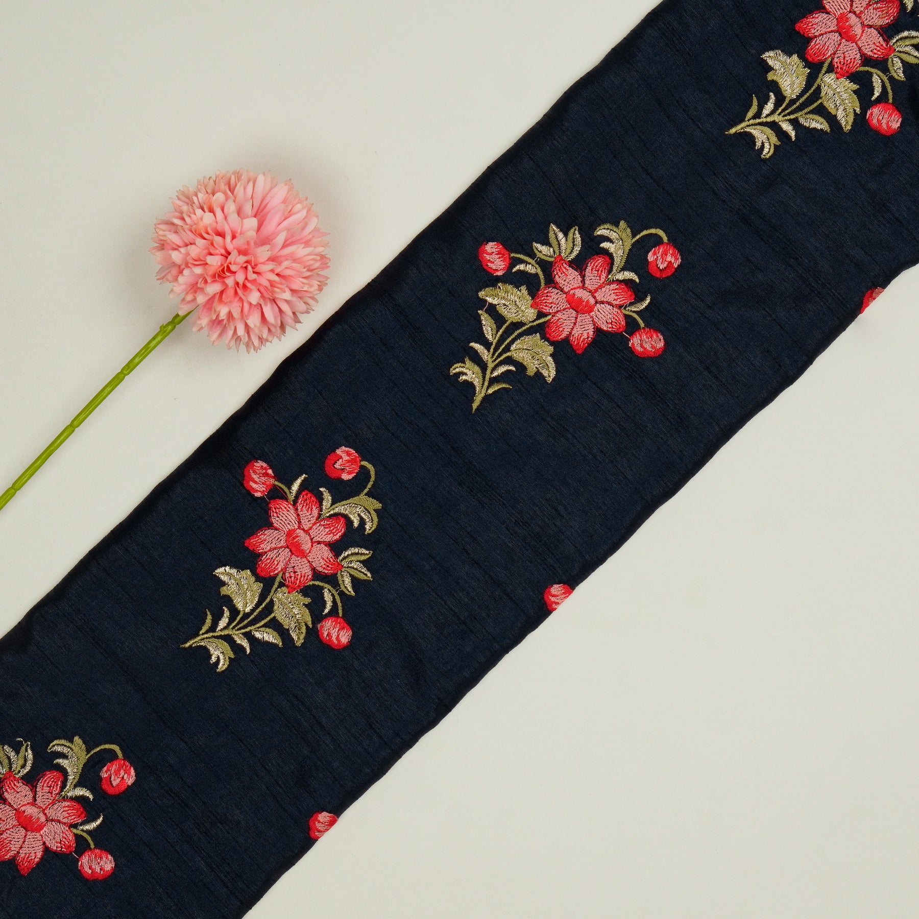 Dalia Buta on Navy Blue Dola Silk Embroidered Fabric