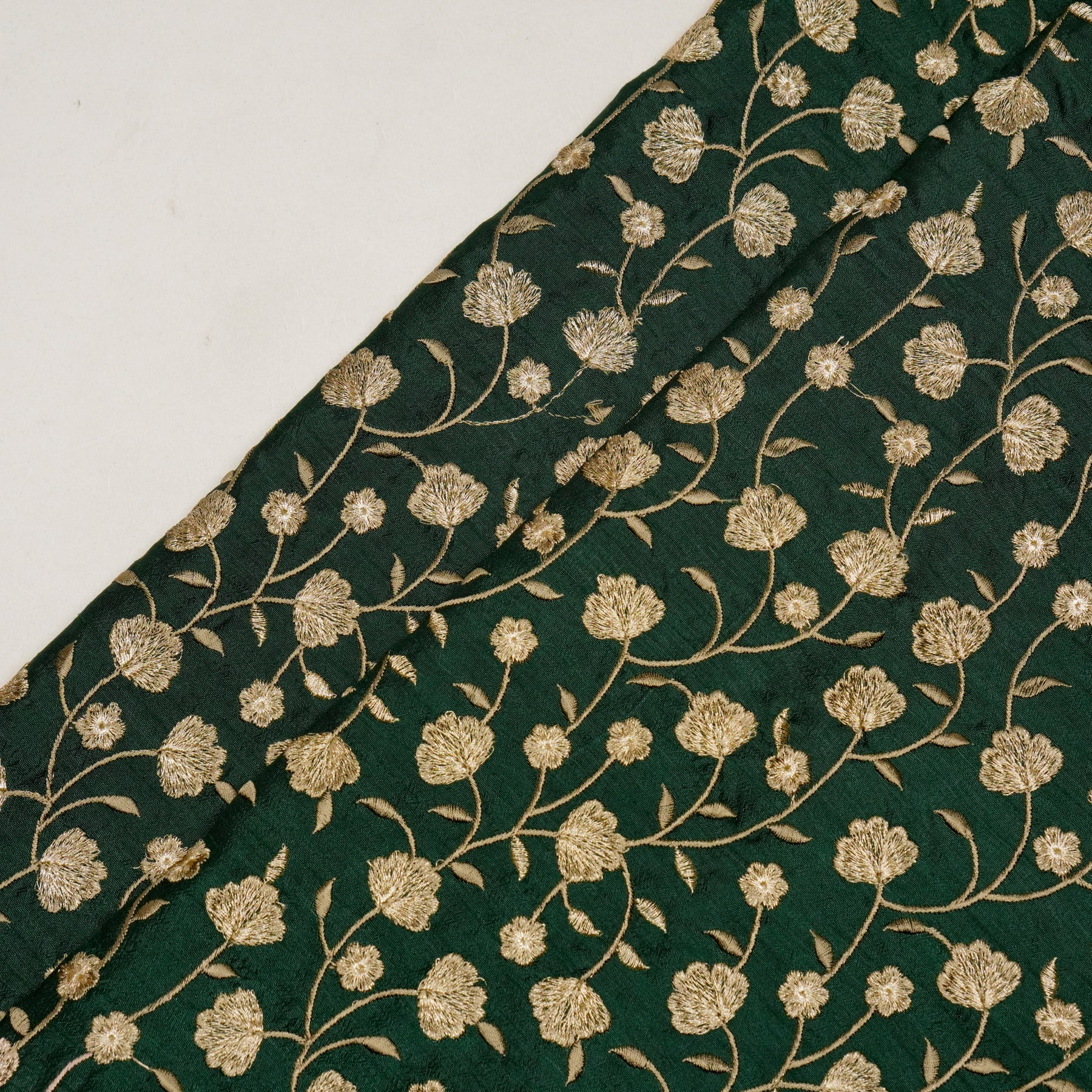 Ismat Jaal on Bottle Green Dola Silk Embroidered Fabric