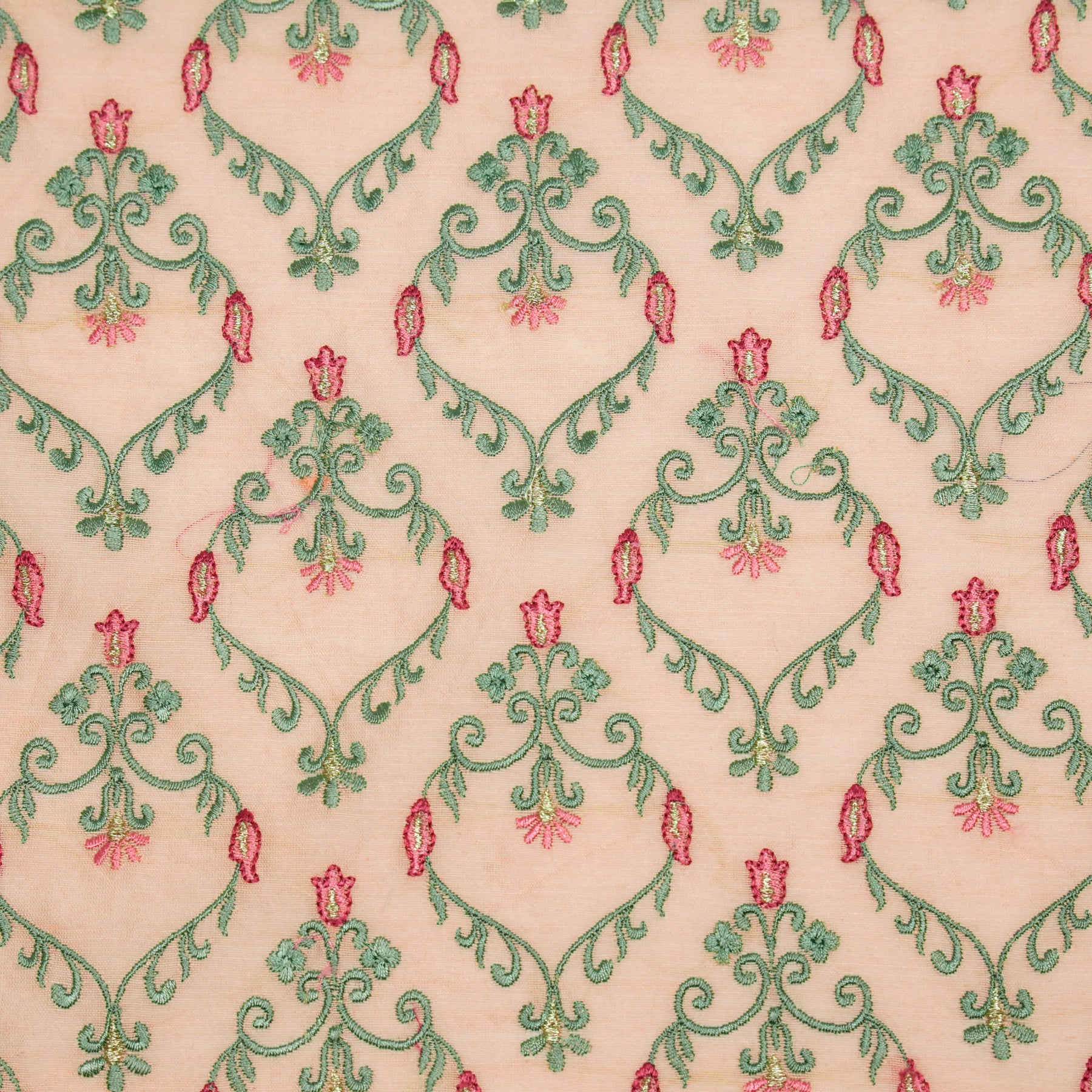 Aniza Jangla on Peach Semi Chanderi Embroidered Fabric