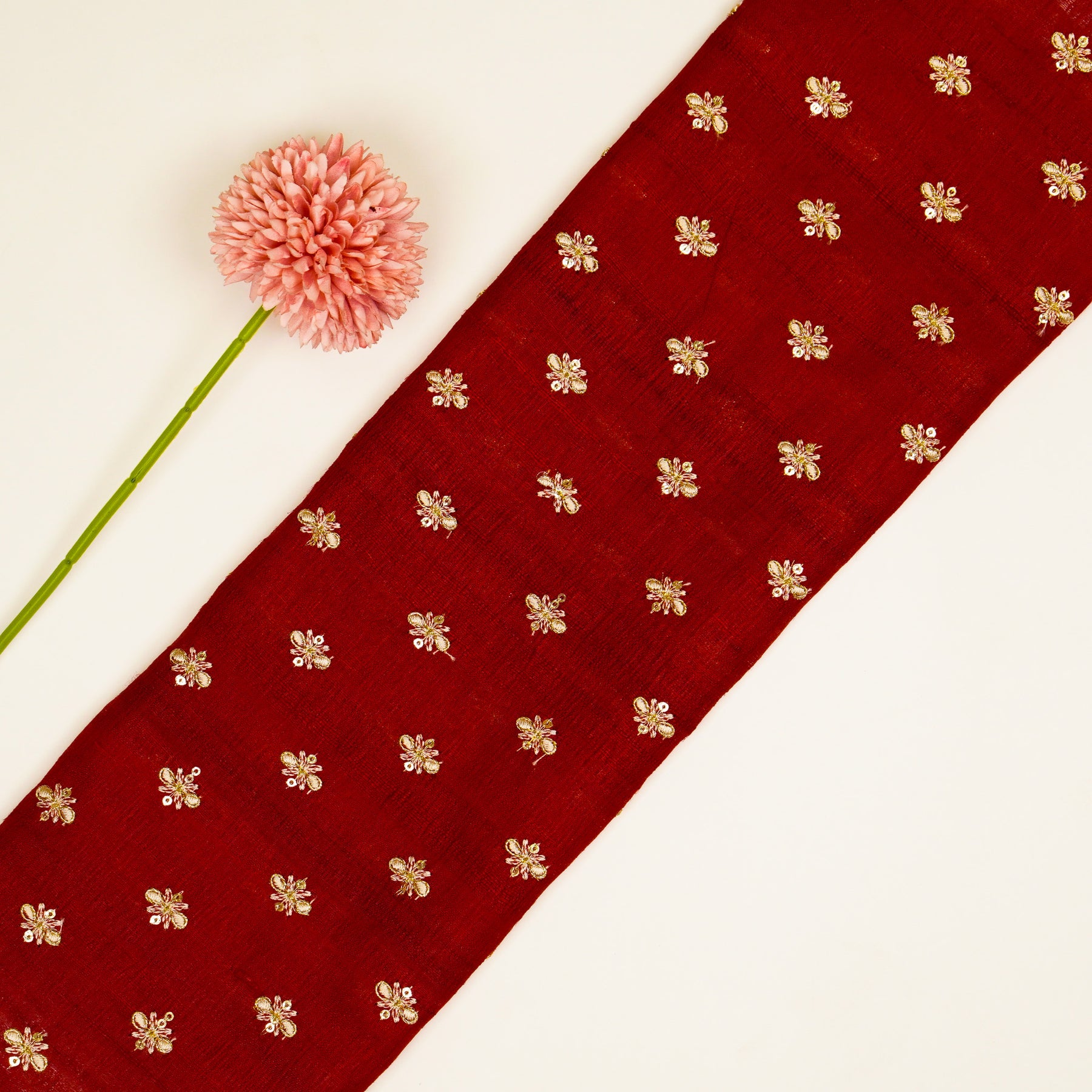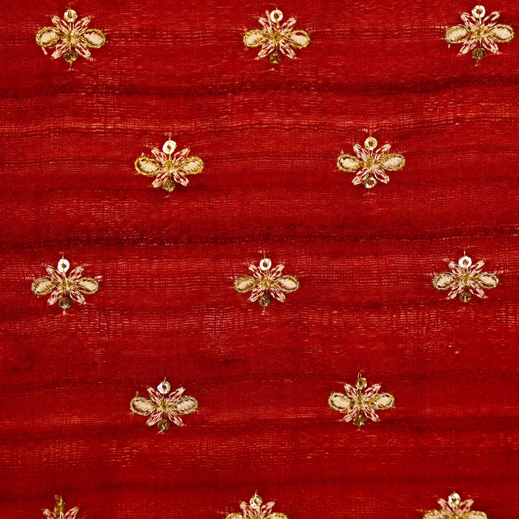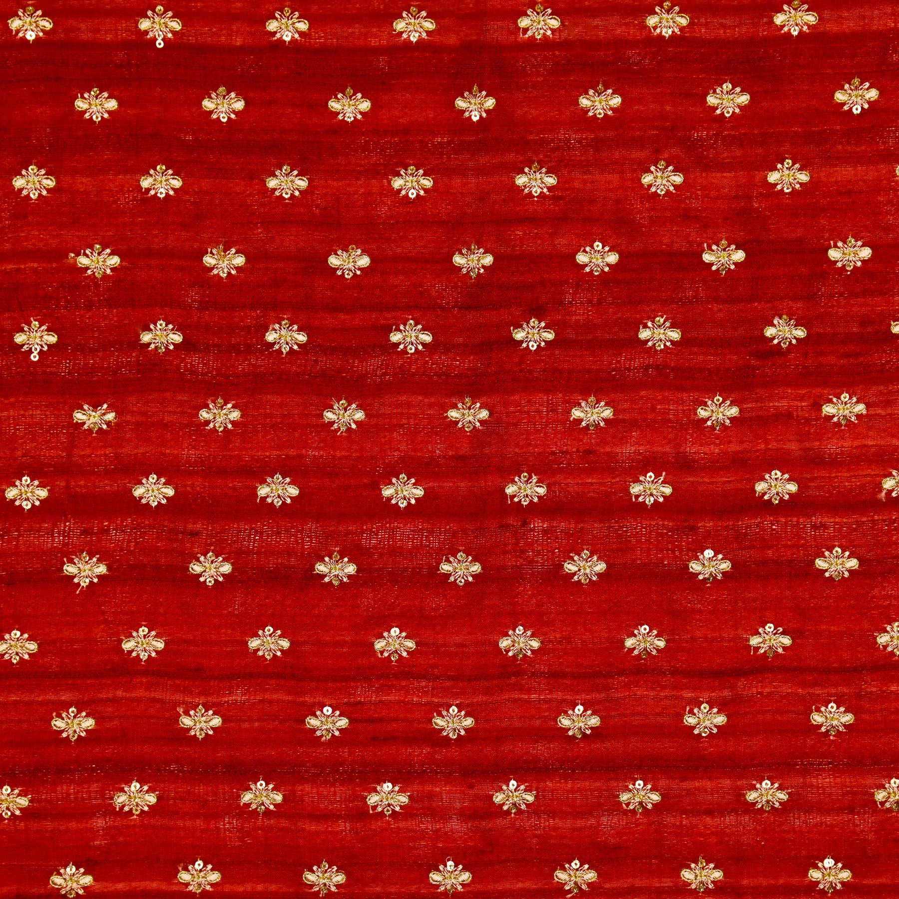 Bindra Buti On Crimson Red Tussar Silk Embroidered Fabric