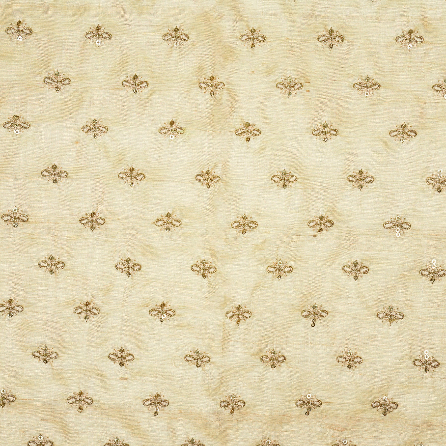 Bindra Buti On Natural Tussar Silk Embroidered Fabric