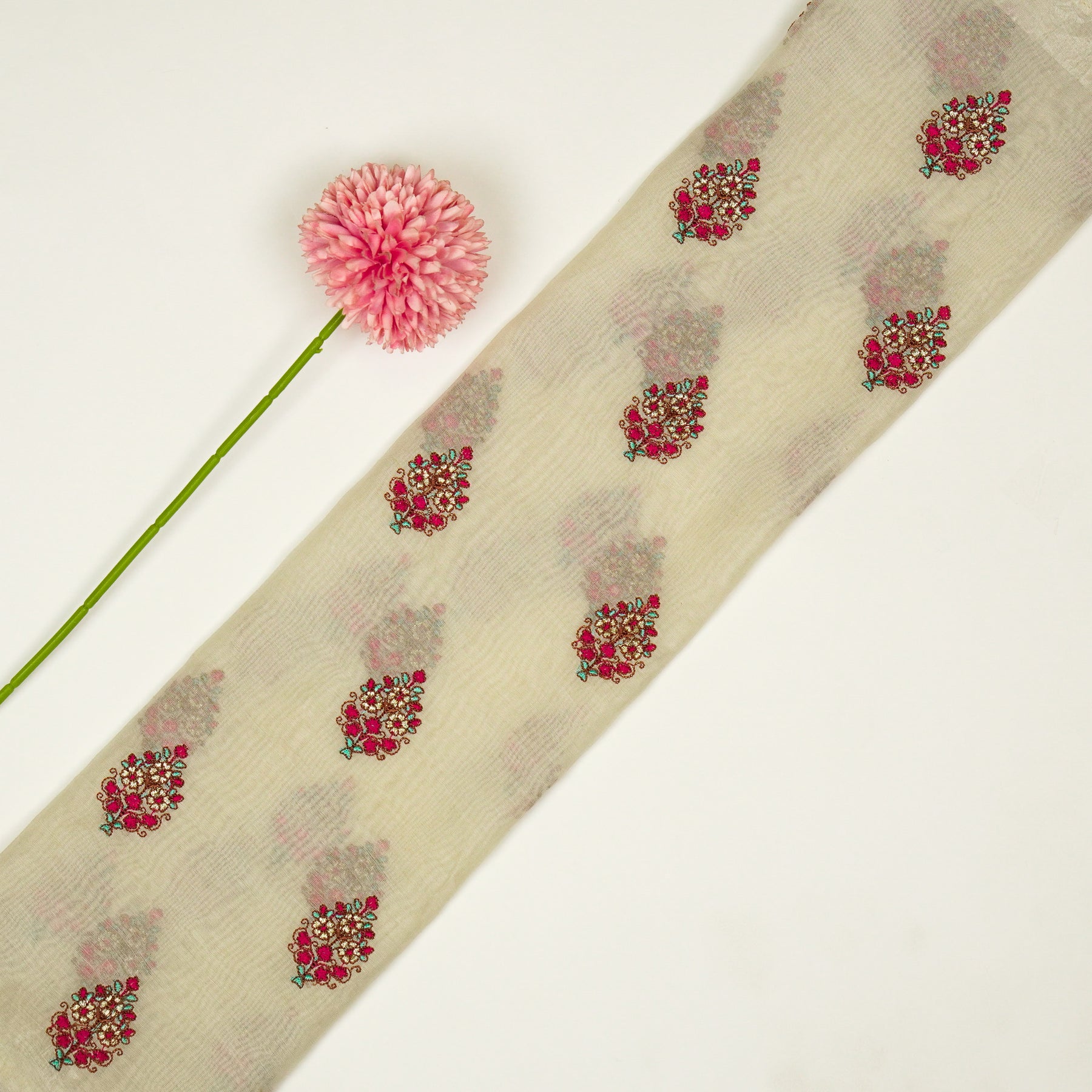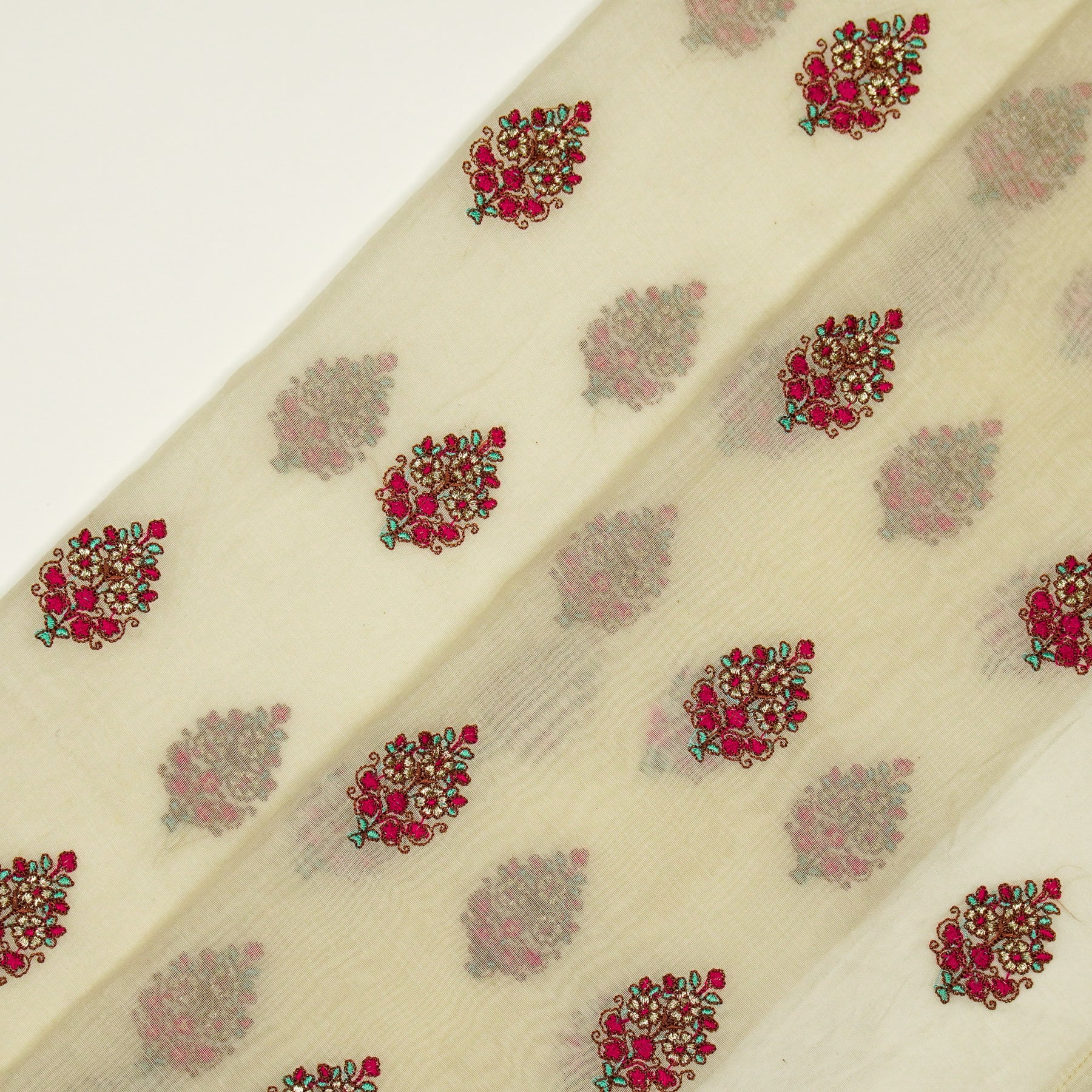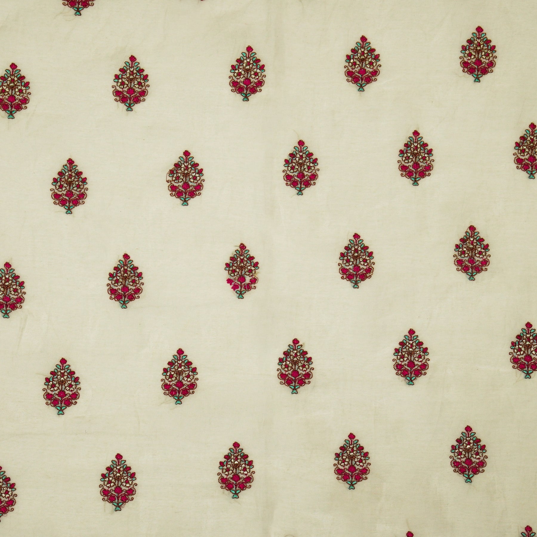 Lavika Buti on Natural Ivory Cotton Silk Embroidered Fabric
