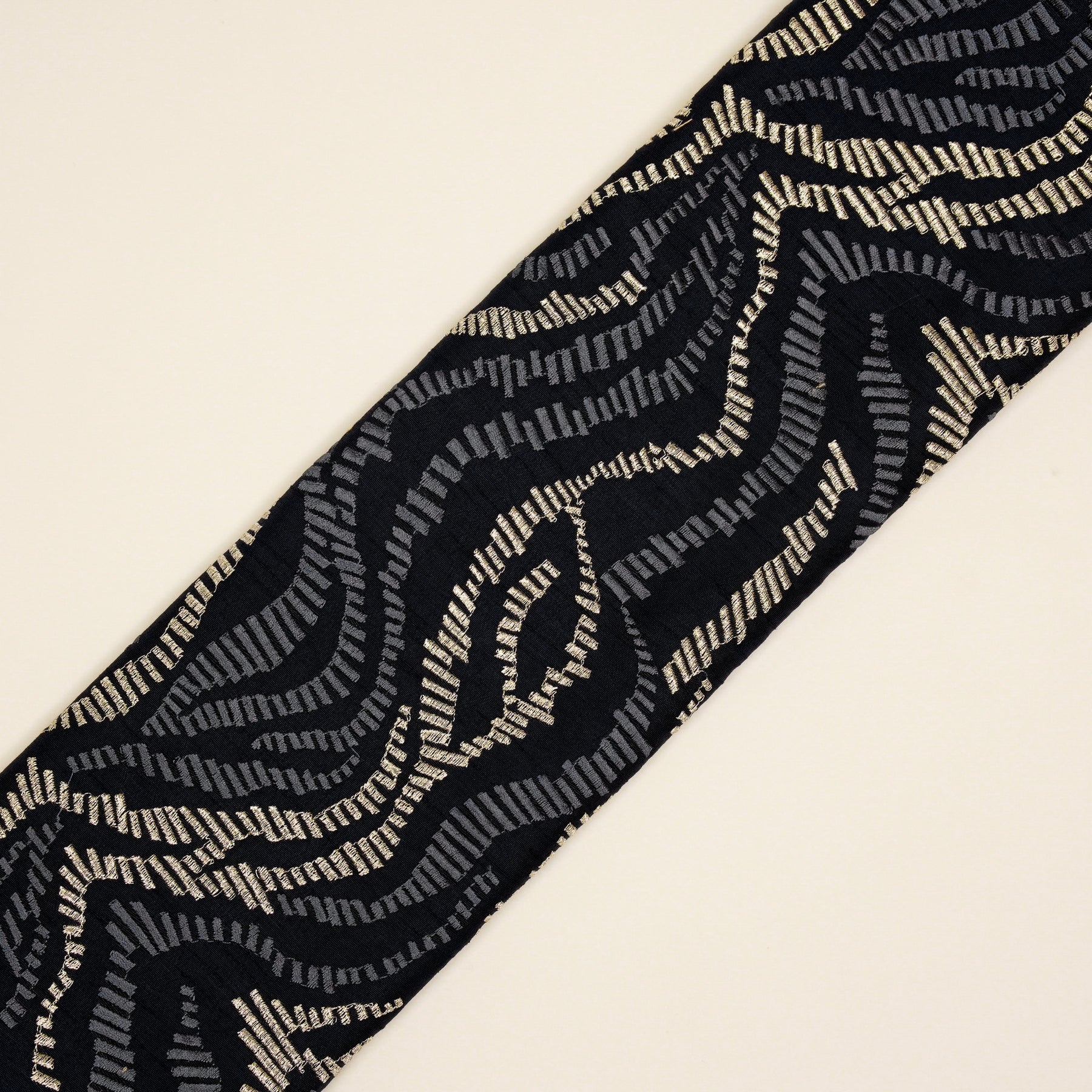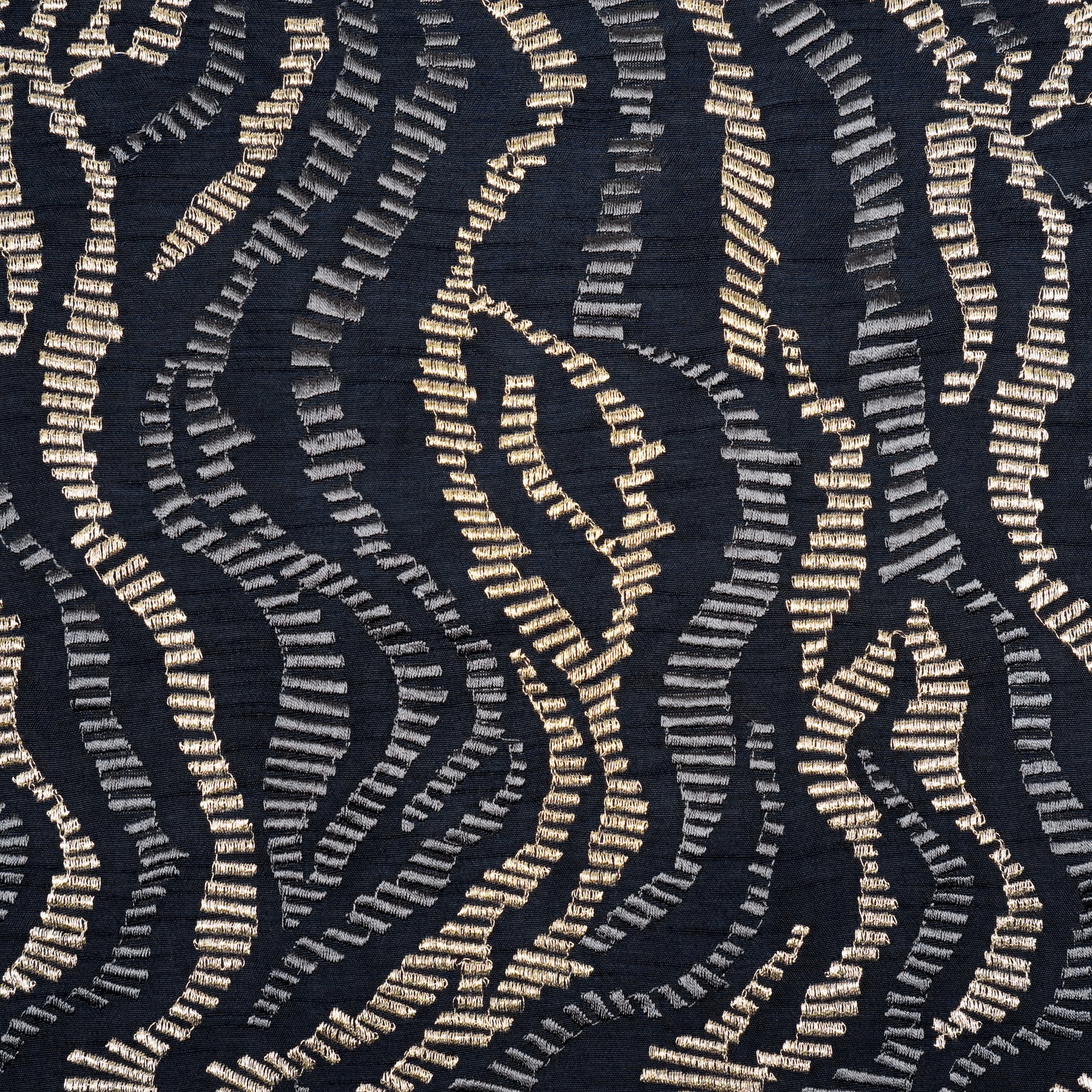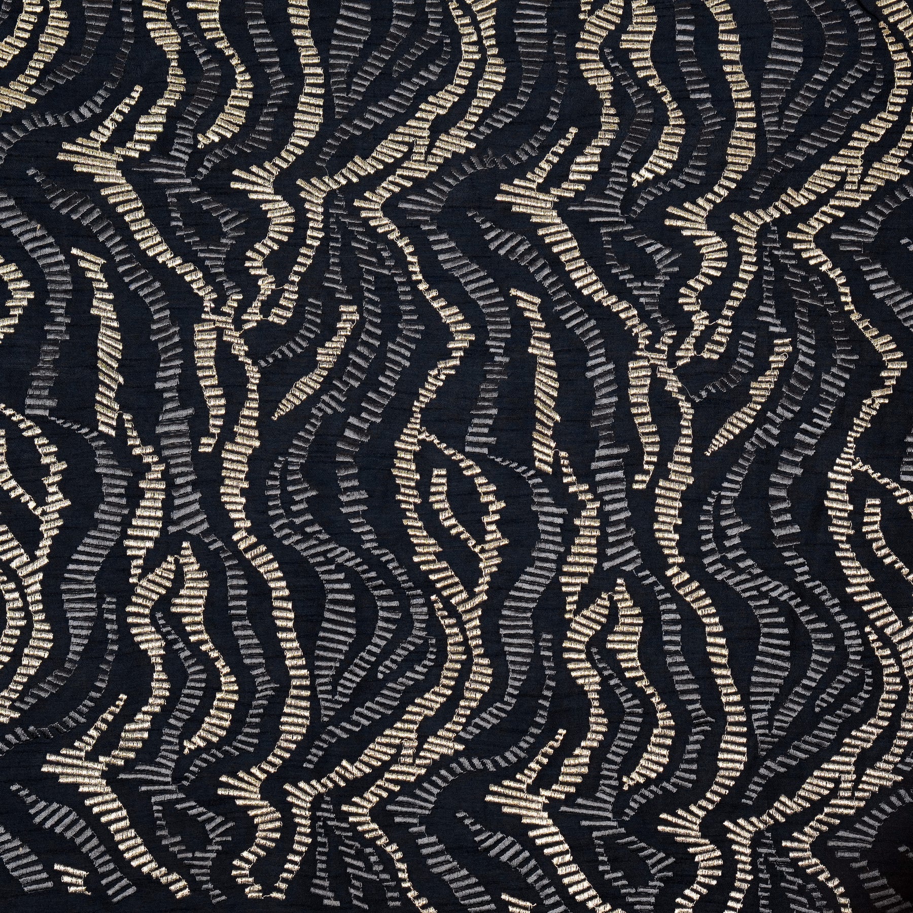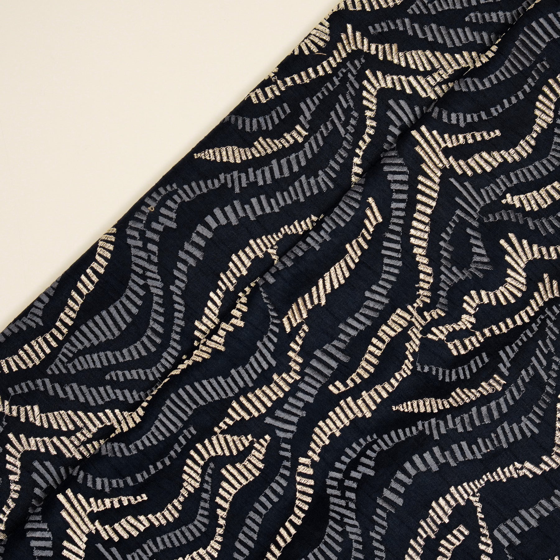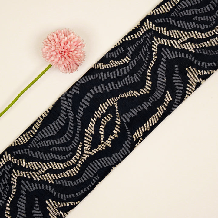 Lehar Jaal on Navy Blue Semi Raw Silk Embroidered Fabric