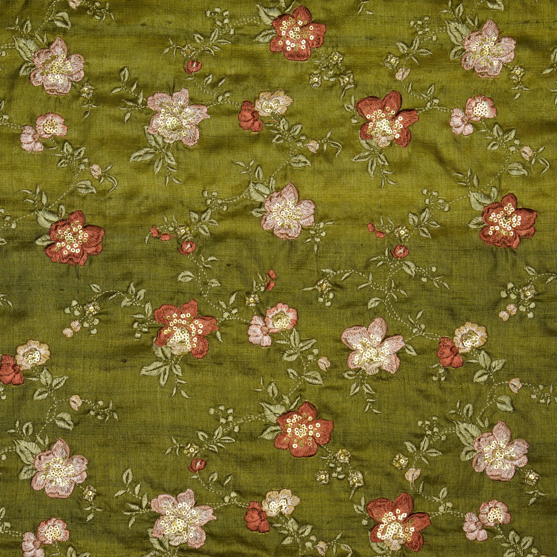 Rabab Jaal On Olive Tussar Silk Embroidered Fabric