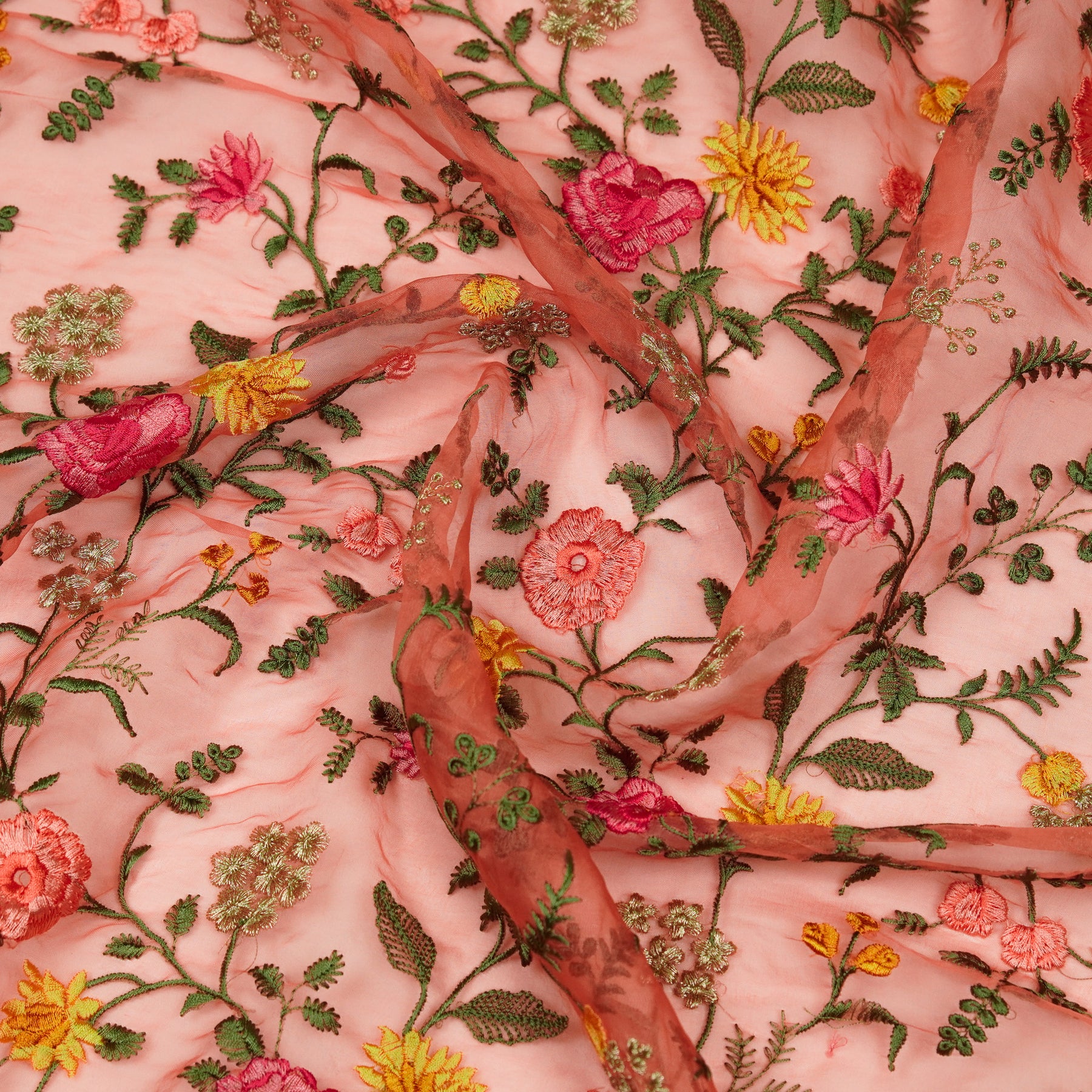 Rosa Jaal on Gajari Silk Organza  Embroidered Fabric