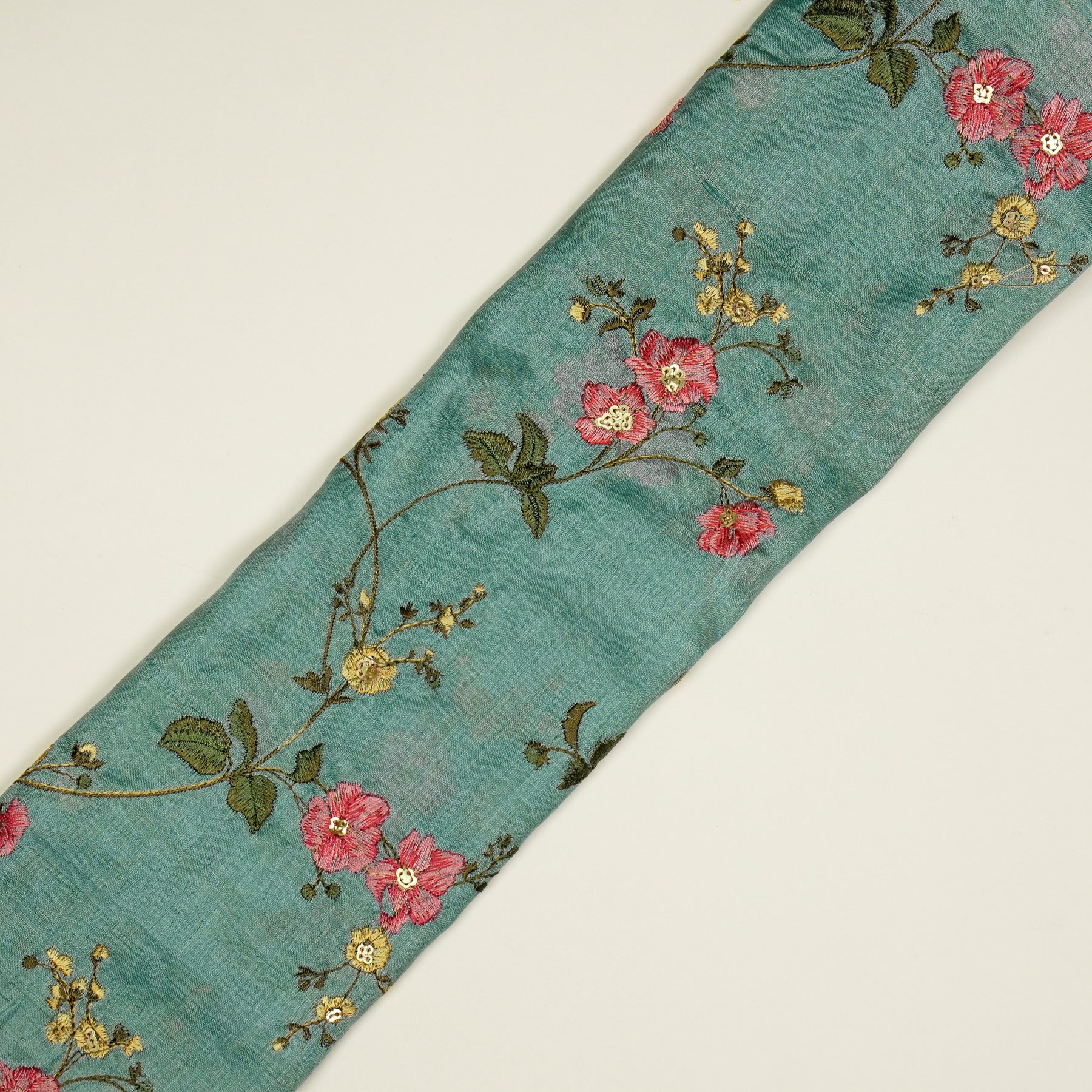 Ruqaya Jaal On Sky Blue Tussar Silk Embroidered Fabric