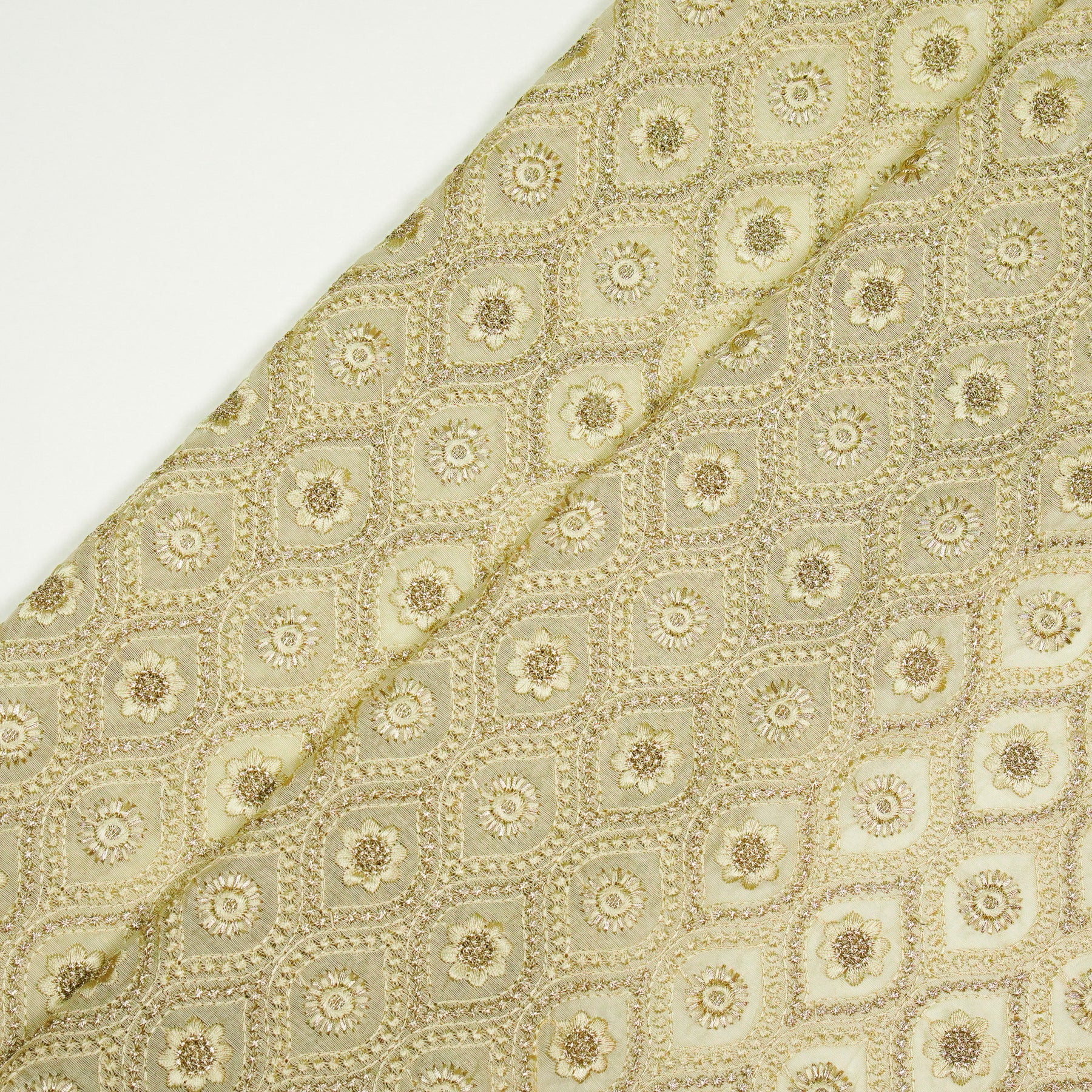 Swarnika Jaal on Cream Semi Chanderi Embroidered Fabric