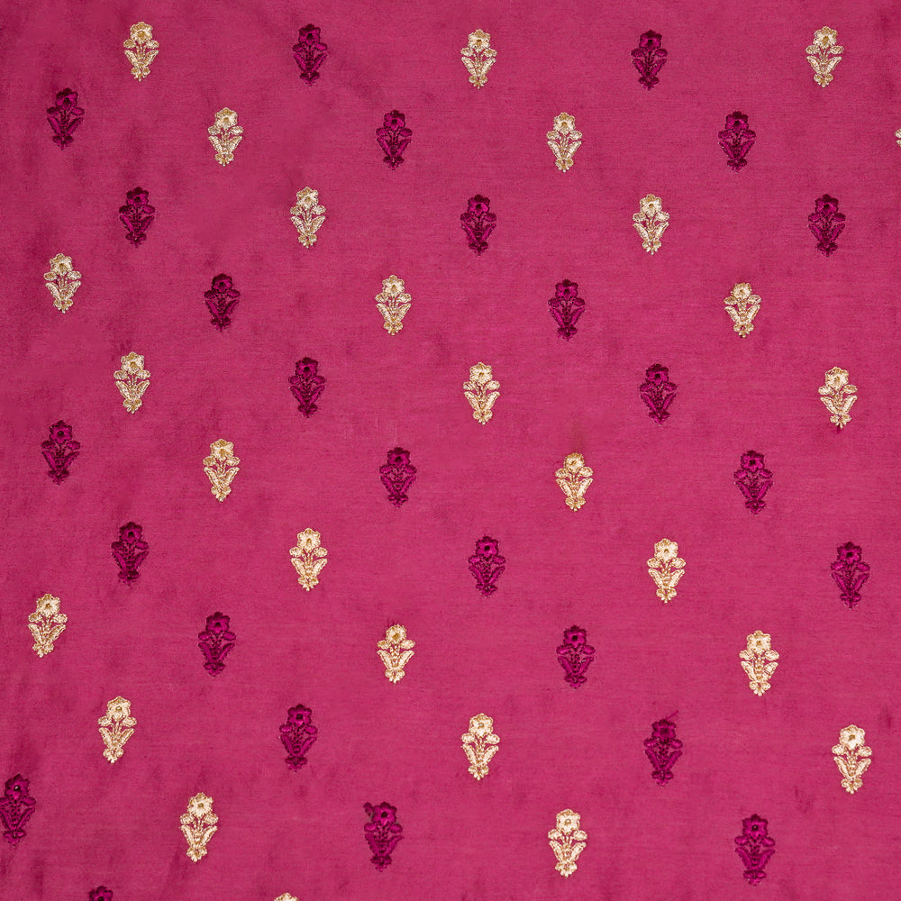 Kanira Jaal on Dark Fuxia Dola Silk Embroidered Fabric