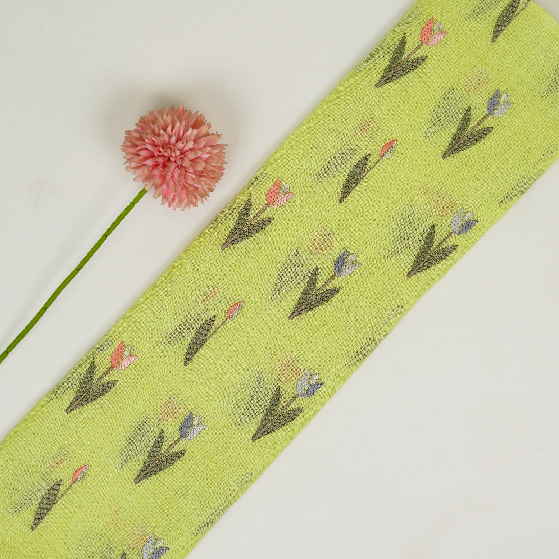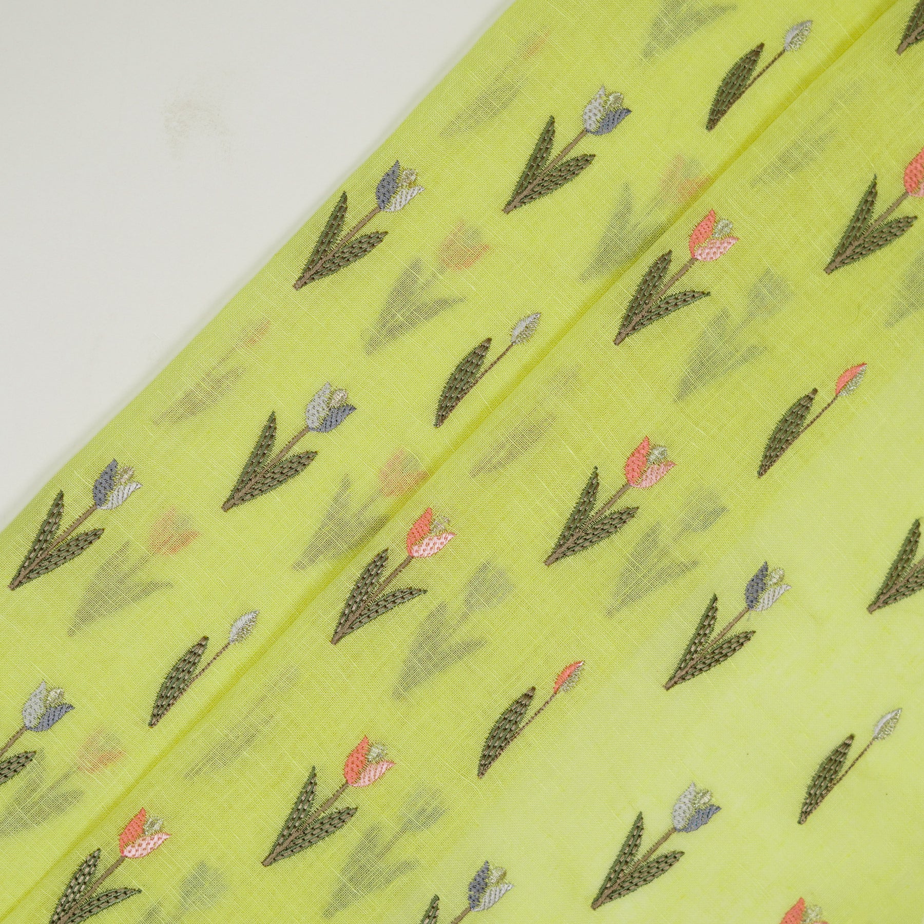 Luma Buti on Lemon Gauged Linen Embroidered Fabric