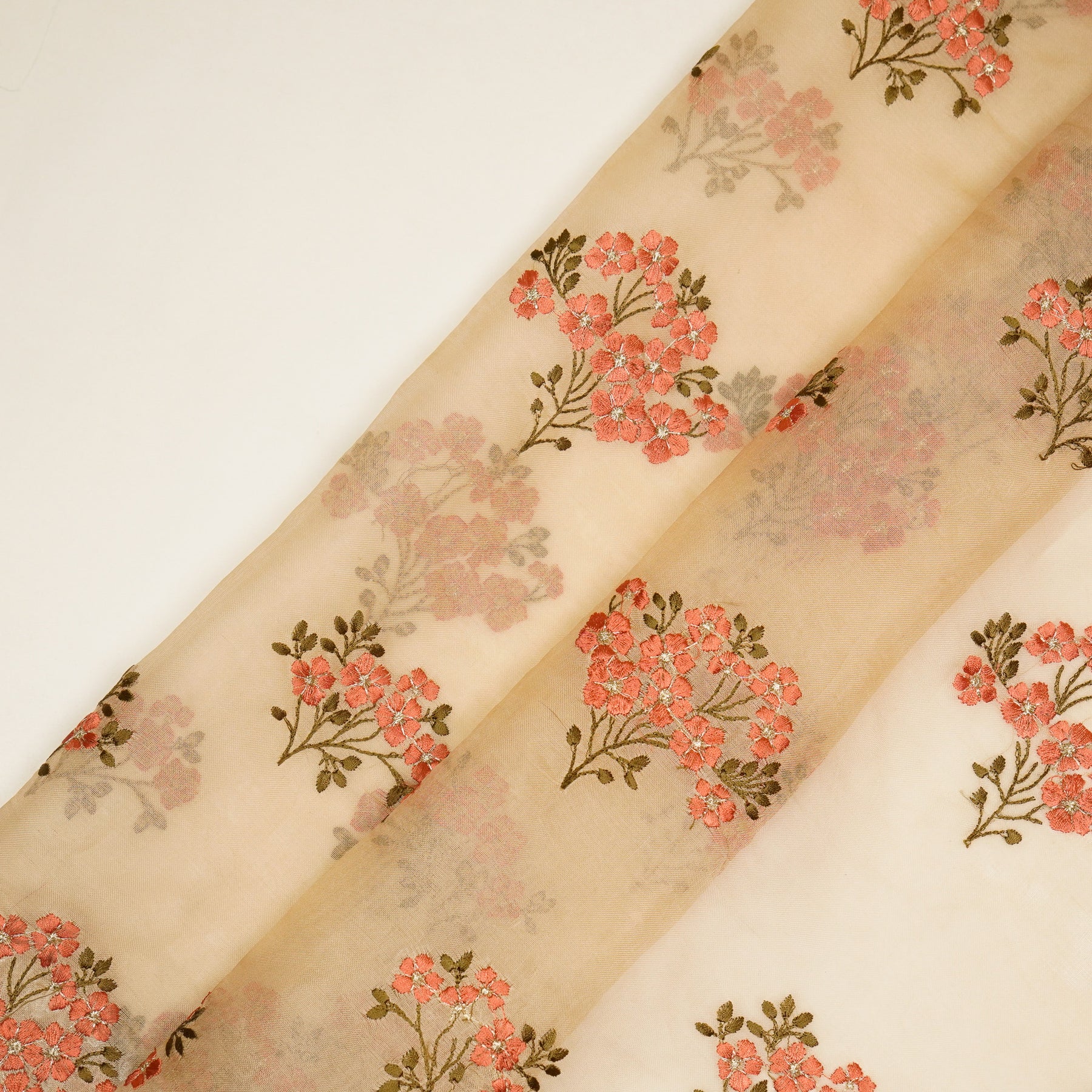 Lamia Buta on Beige Imported Silk Organza Embroidered Fabric