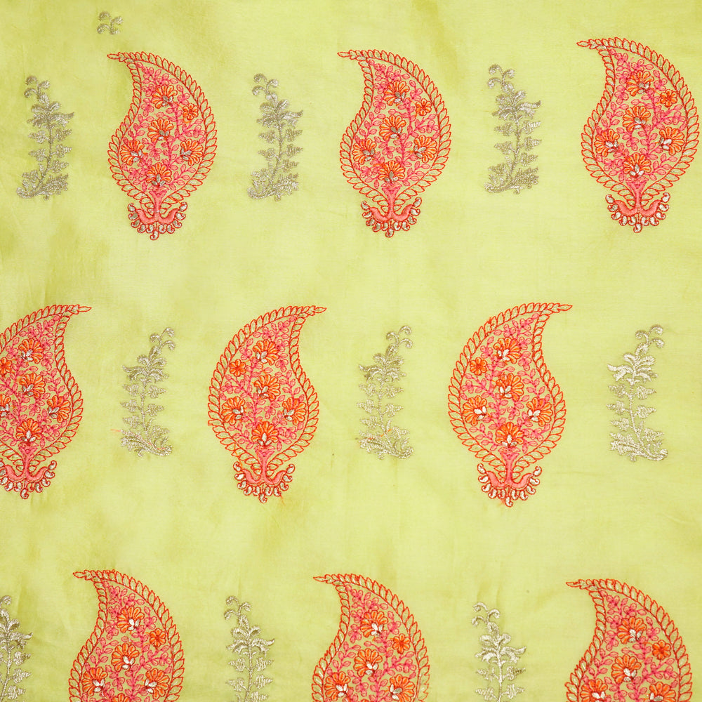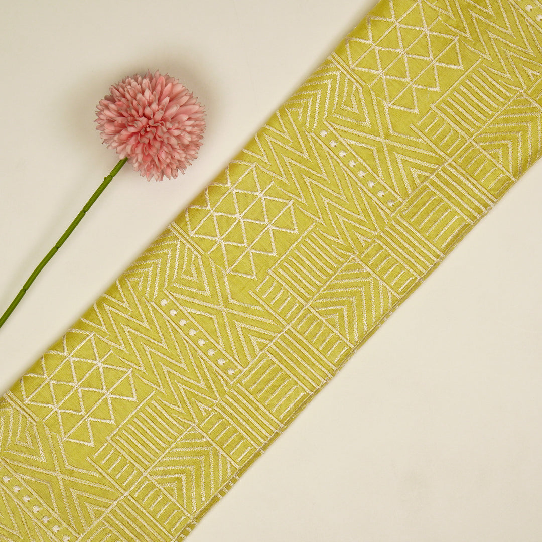 Mehraab Jaal on Lemon Luxe Silk Chanderi Embroidered Fabric