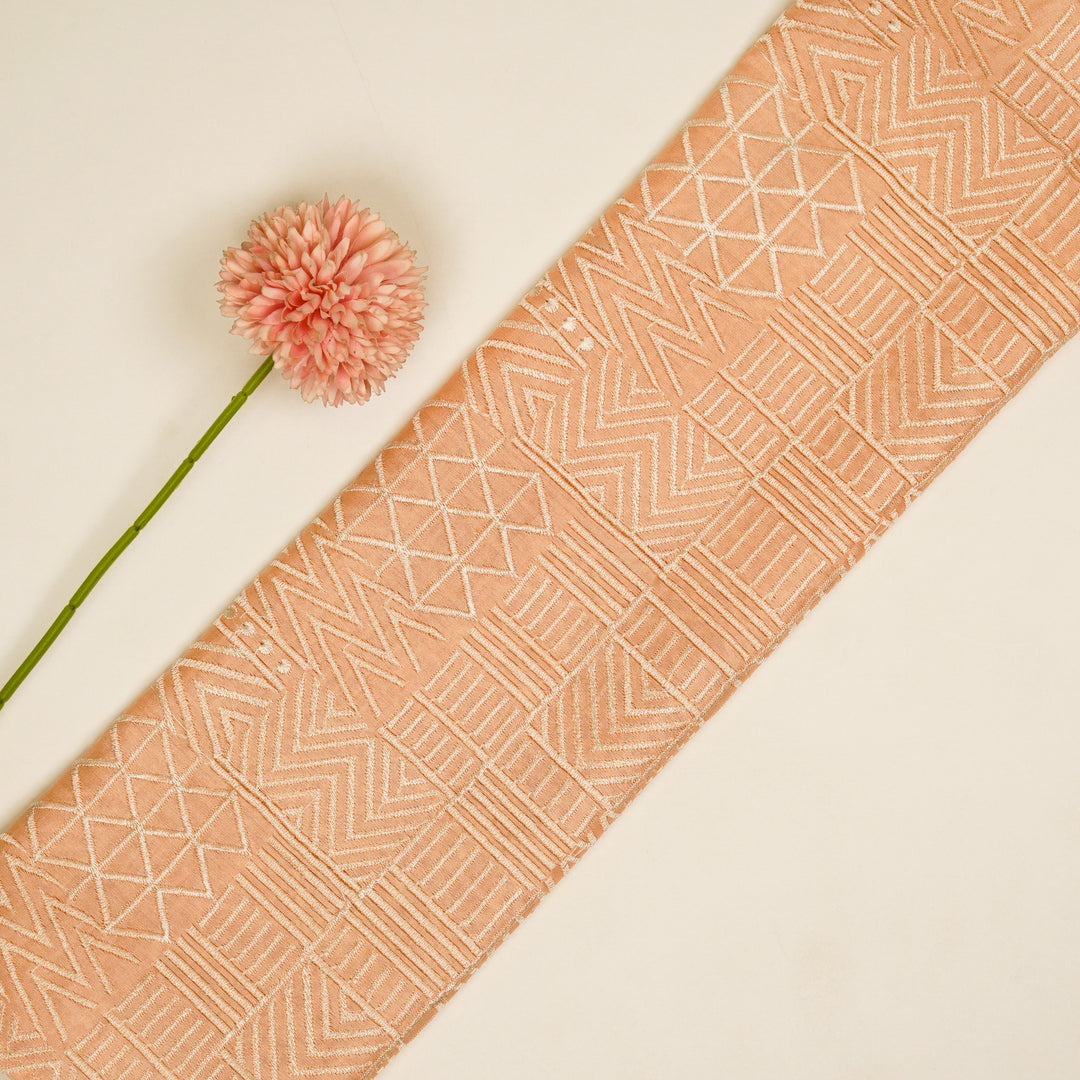 Mehraab Jaal on Peach Luxe Silk Chanderi Embroidered Fabric