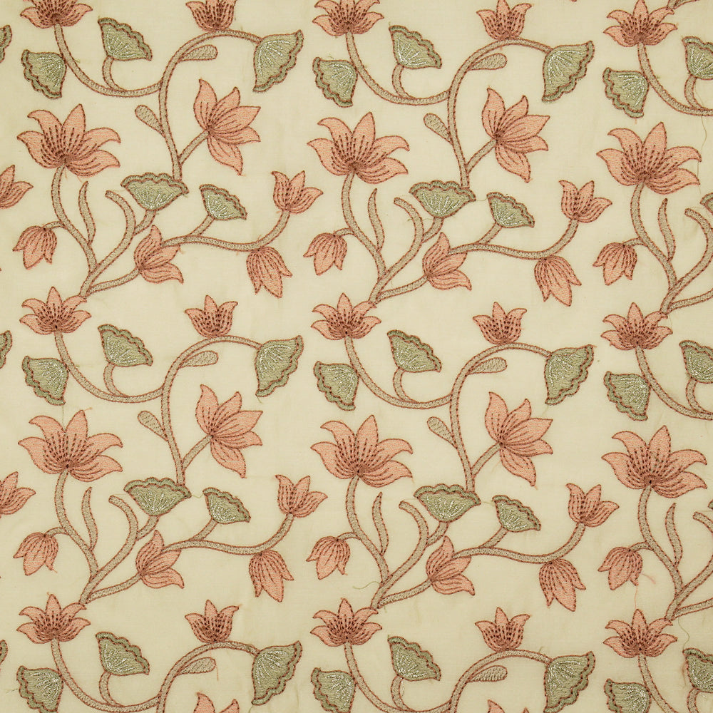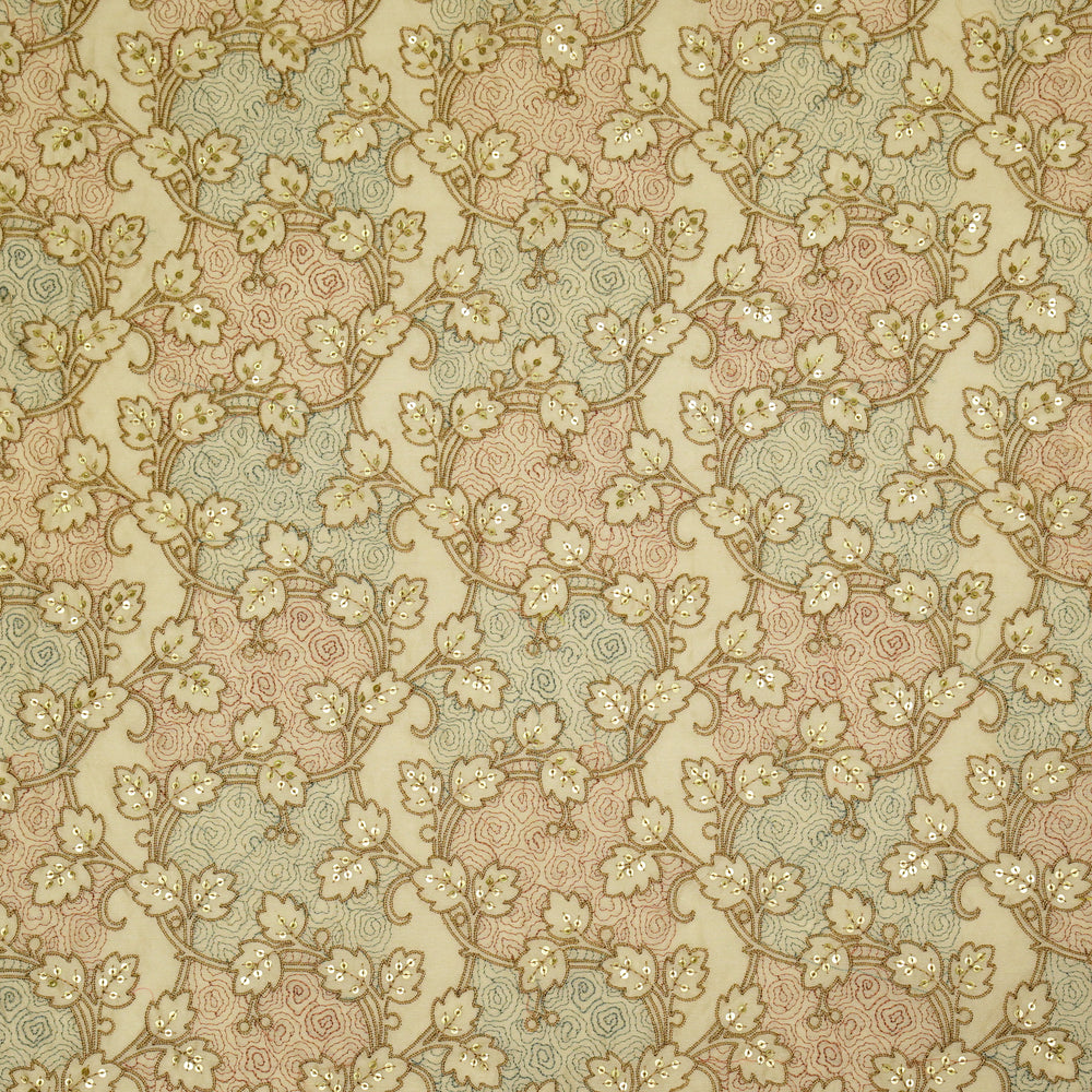 Pushti Buta on Cream Luxe Silk Chanderi Embroidered Fabric