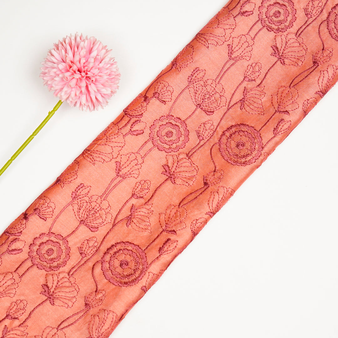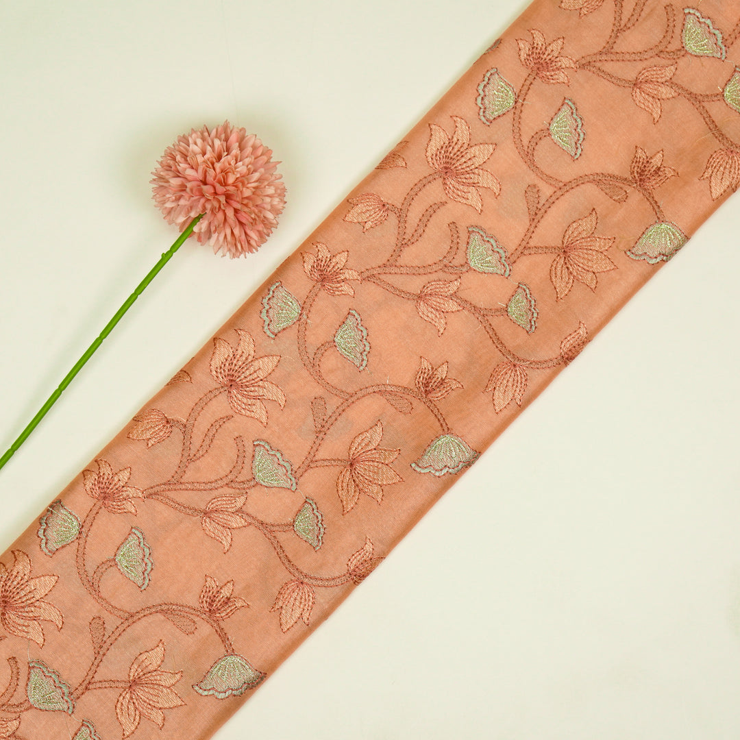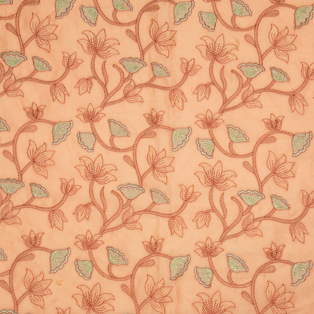 Isha Jaal on Peach Luxe Silk Chanderi Embroidered Fabric
