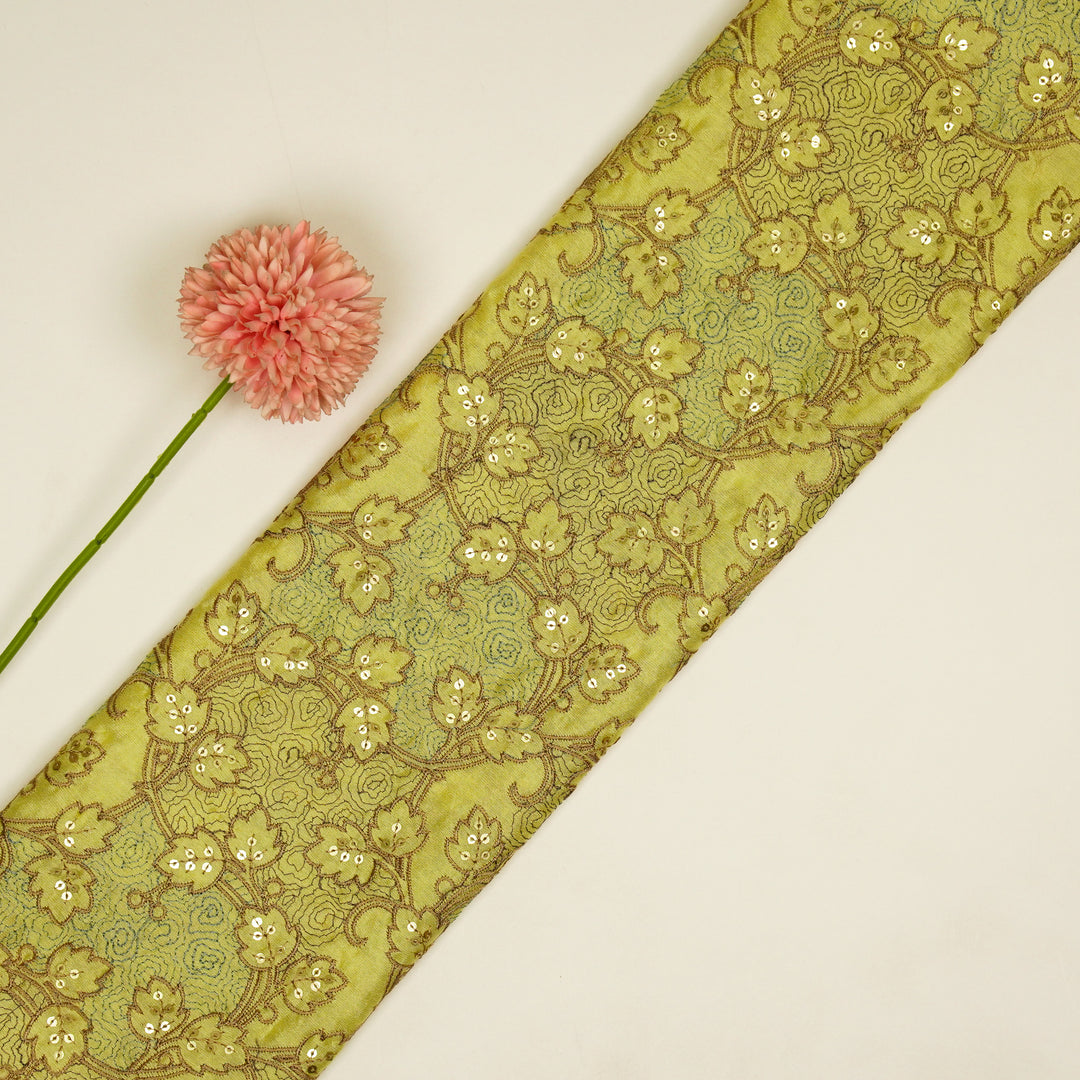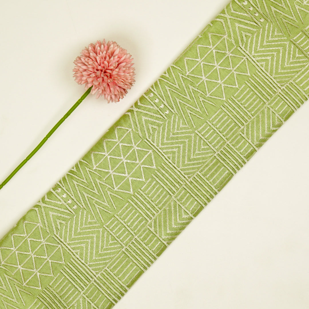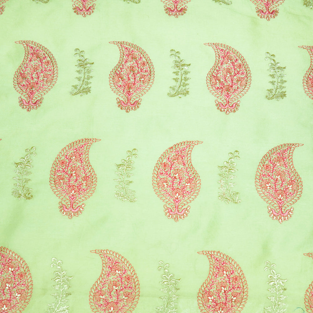 Naila Bird Jaal on Pista Green Luxe Silk Chanderi Embroidered Fabric