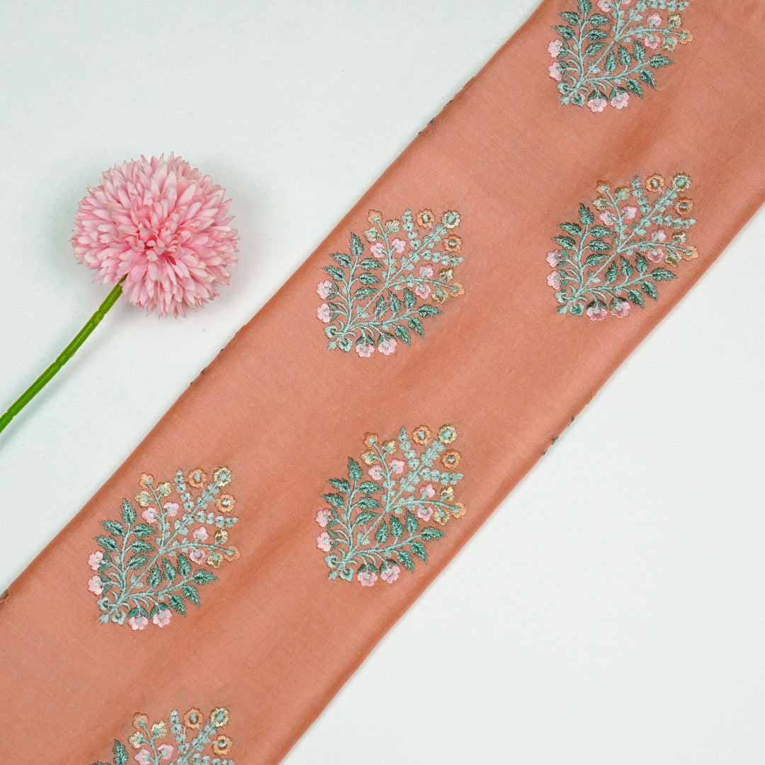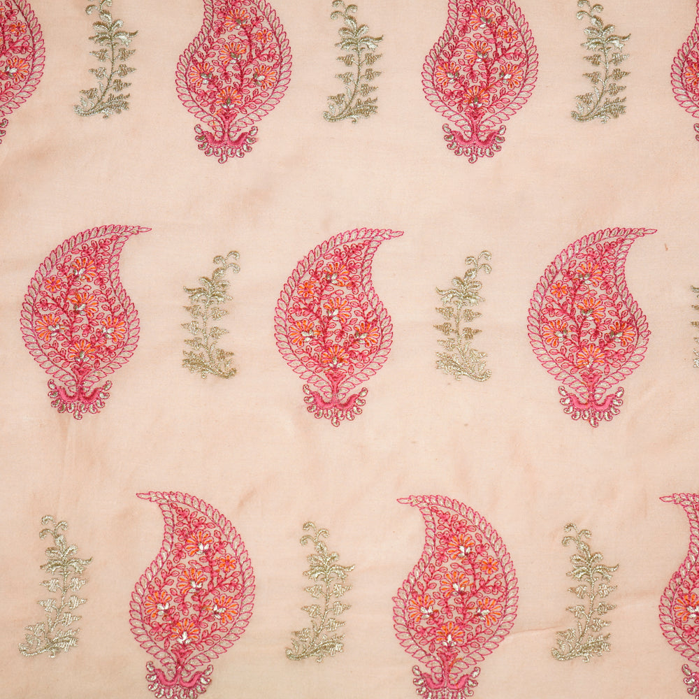Zaira Buta on Peach Luxe Silk Chanderi Embroidered Fabric