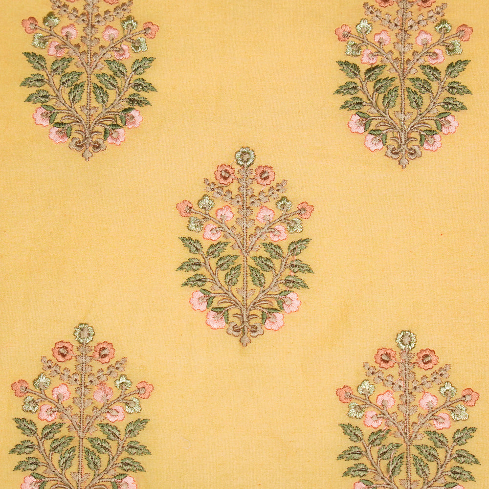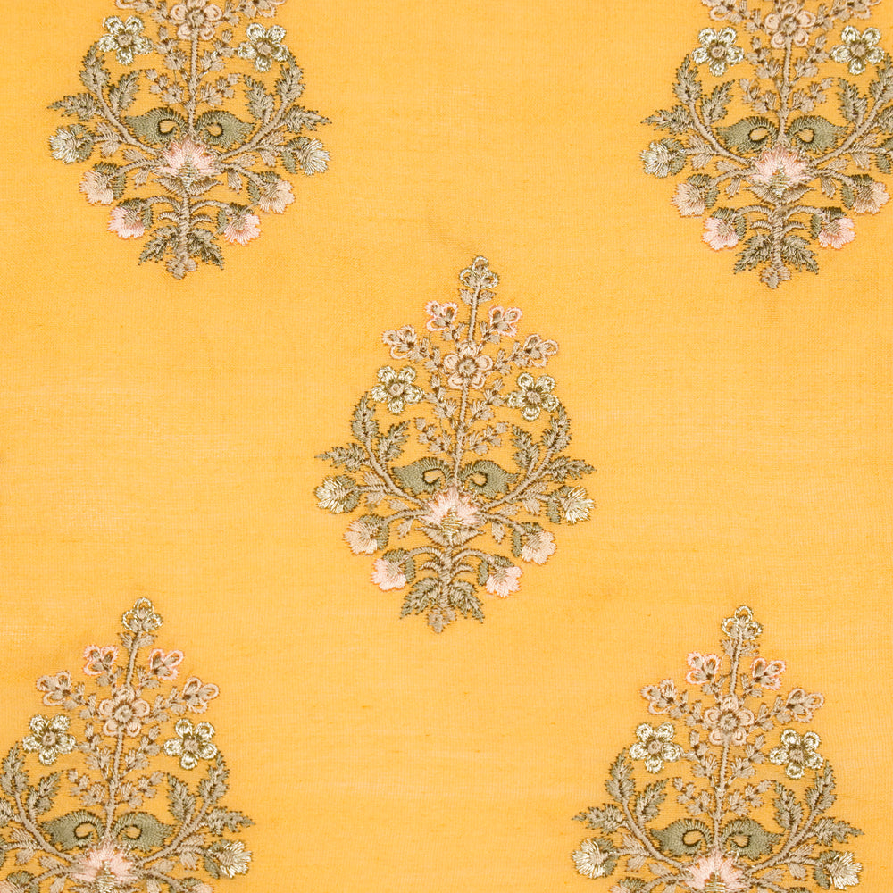 Pushti Buta on Dusky Gold Luxe Silk Chanderi Embroidered Fabric