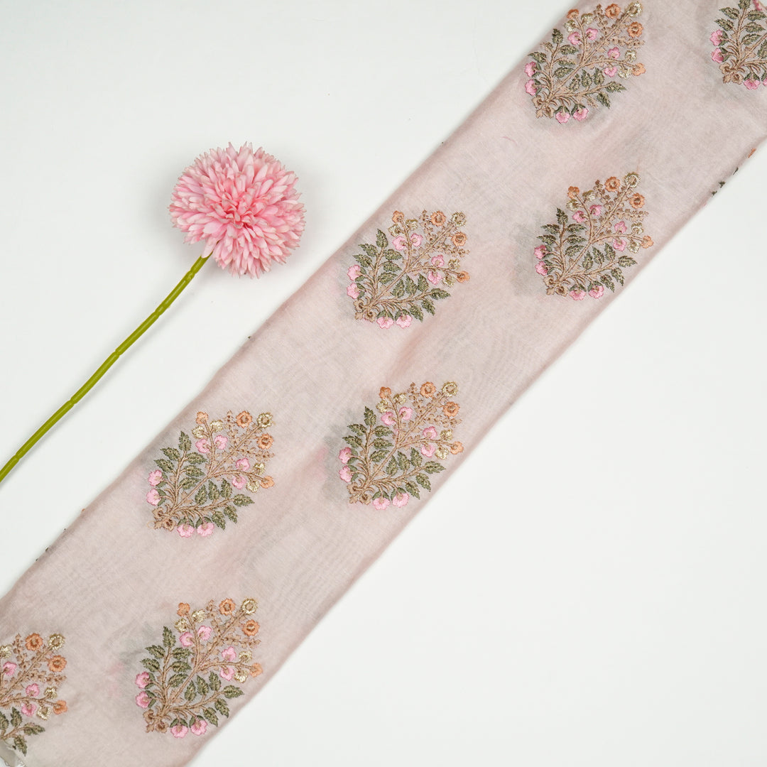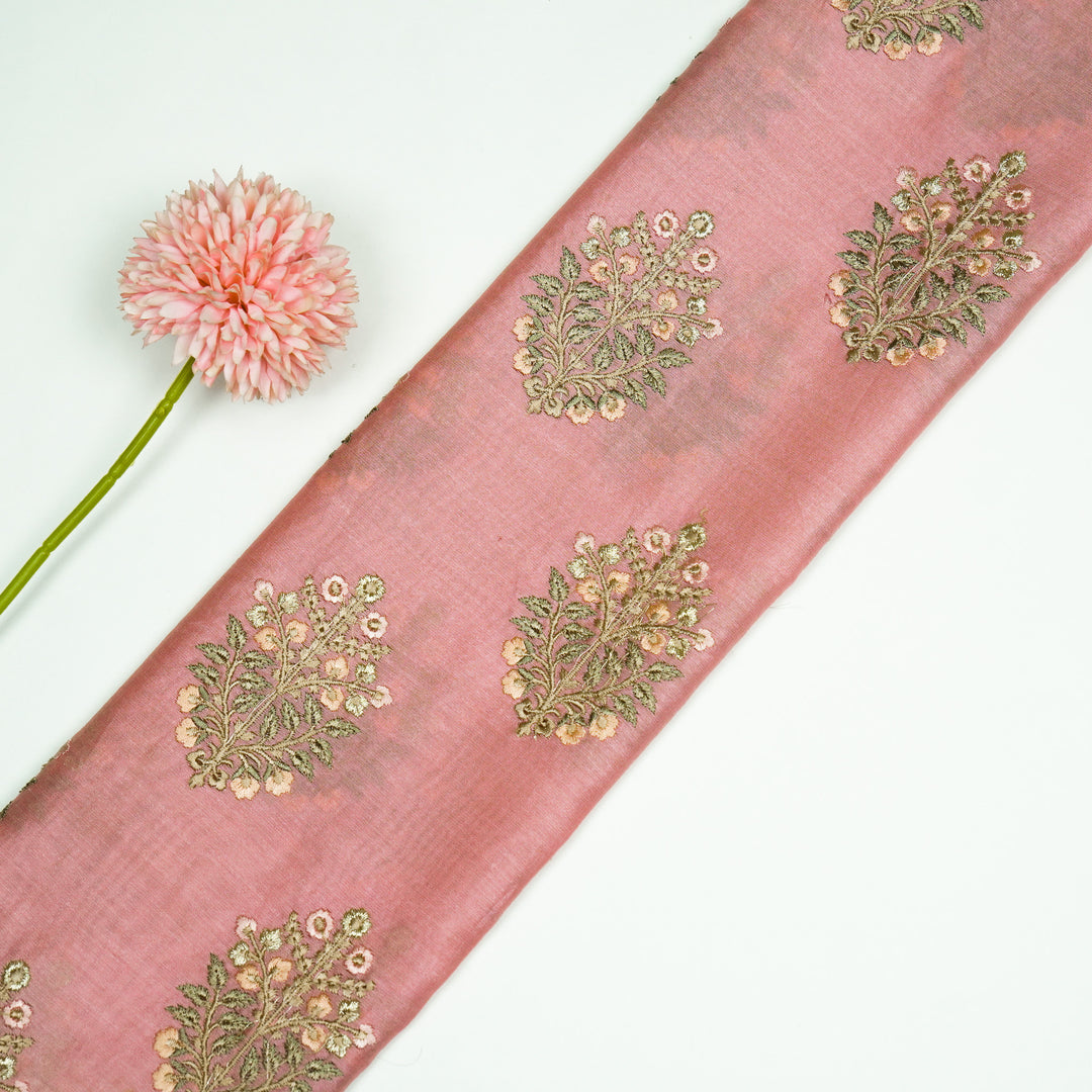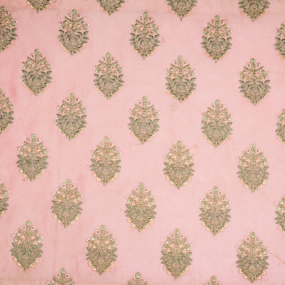 Pushti Buta on Onion Pink Luxe Silk Chanderi Embroidered Fabric