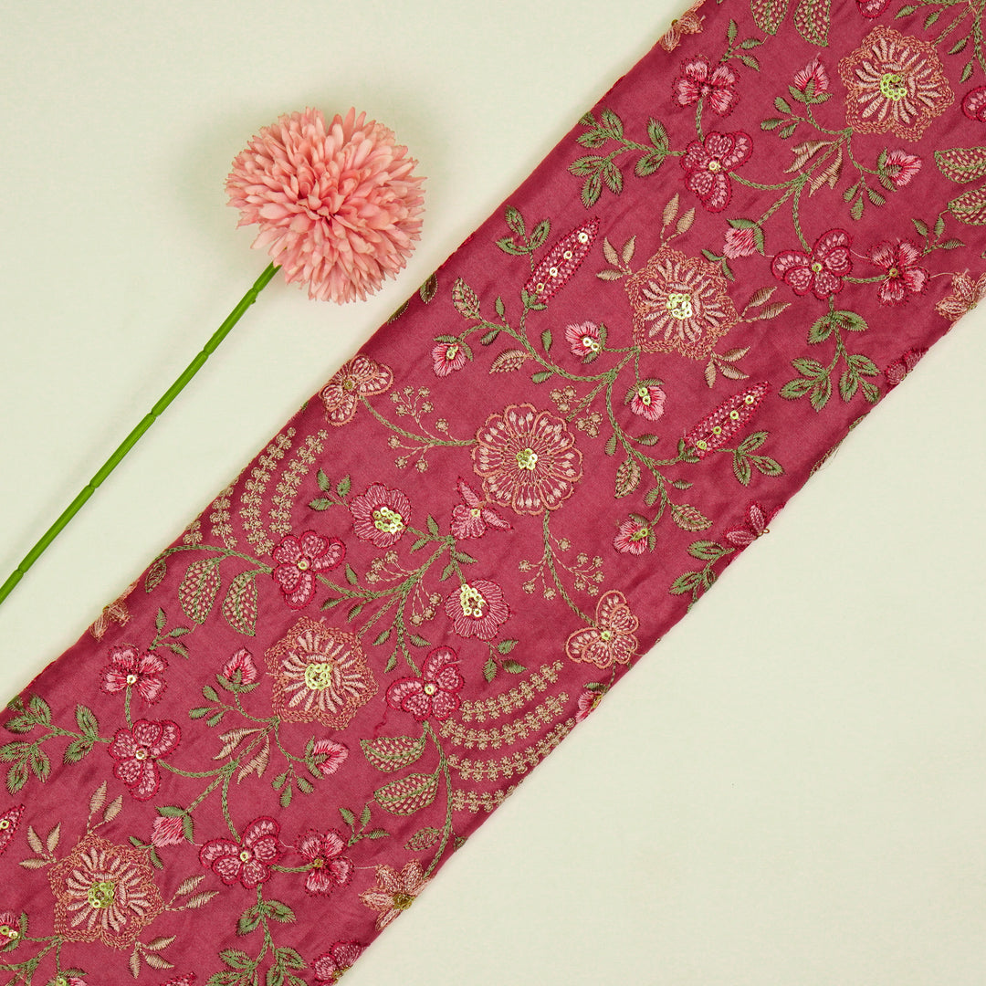 Barika Jaal on Dusky Fuxia Luxe Silk Chanderi Embroidered Fabric