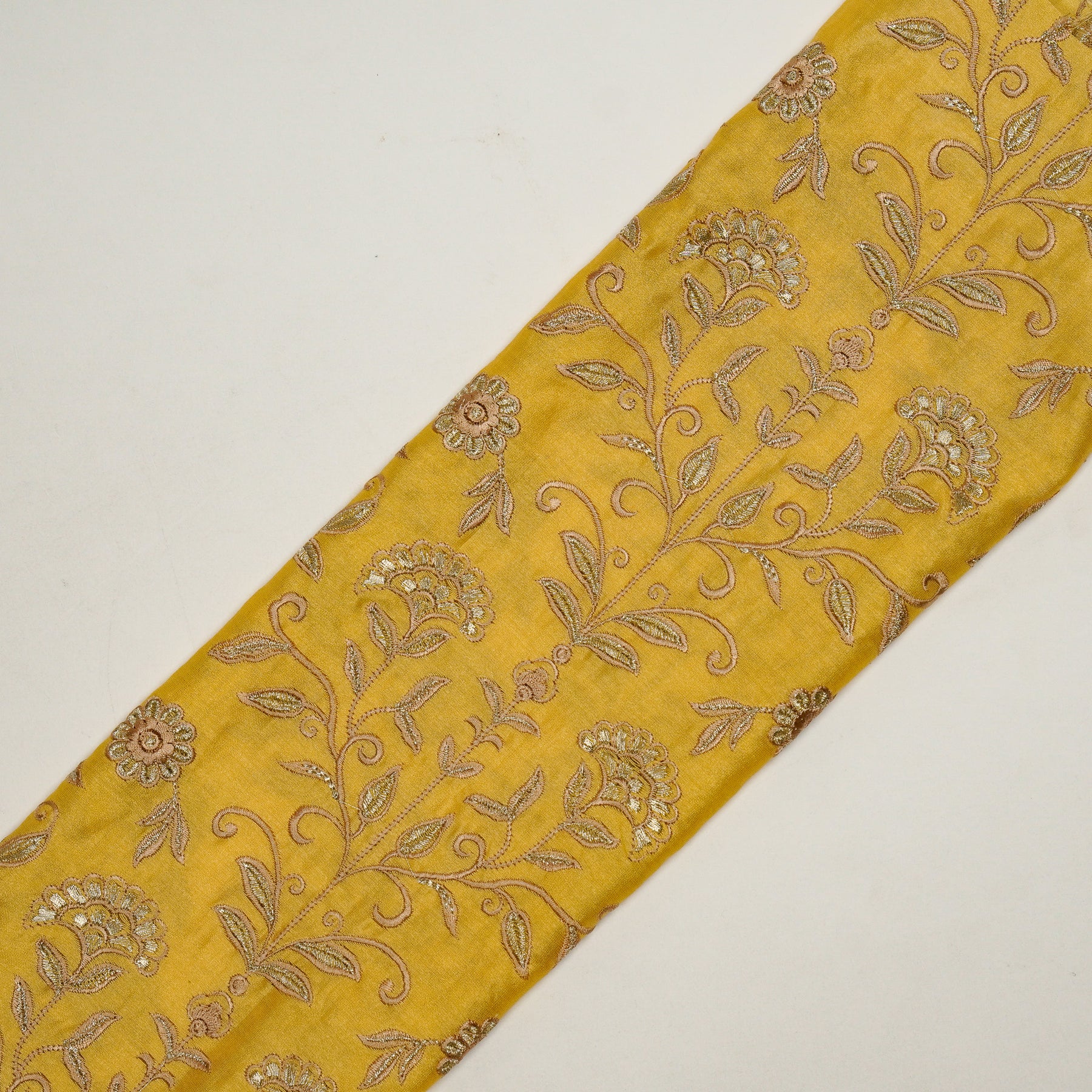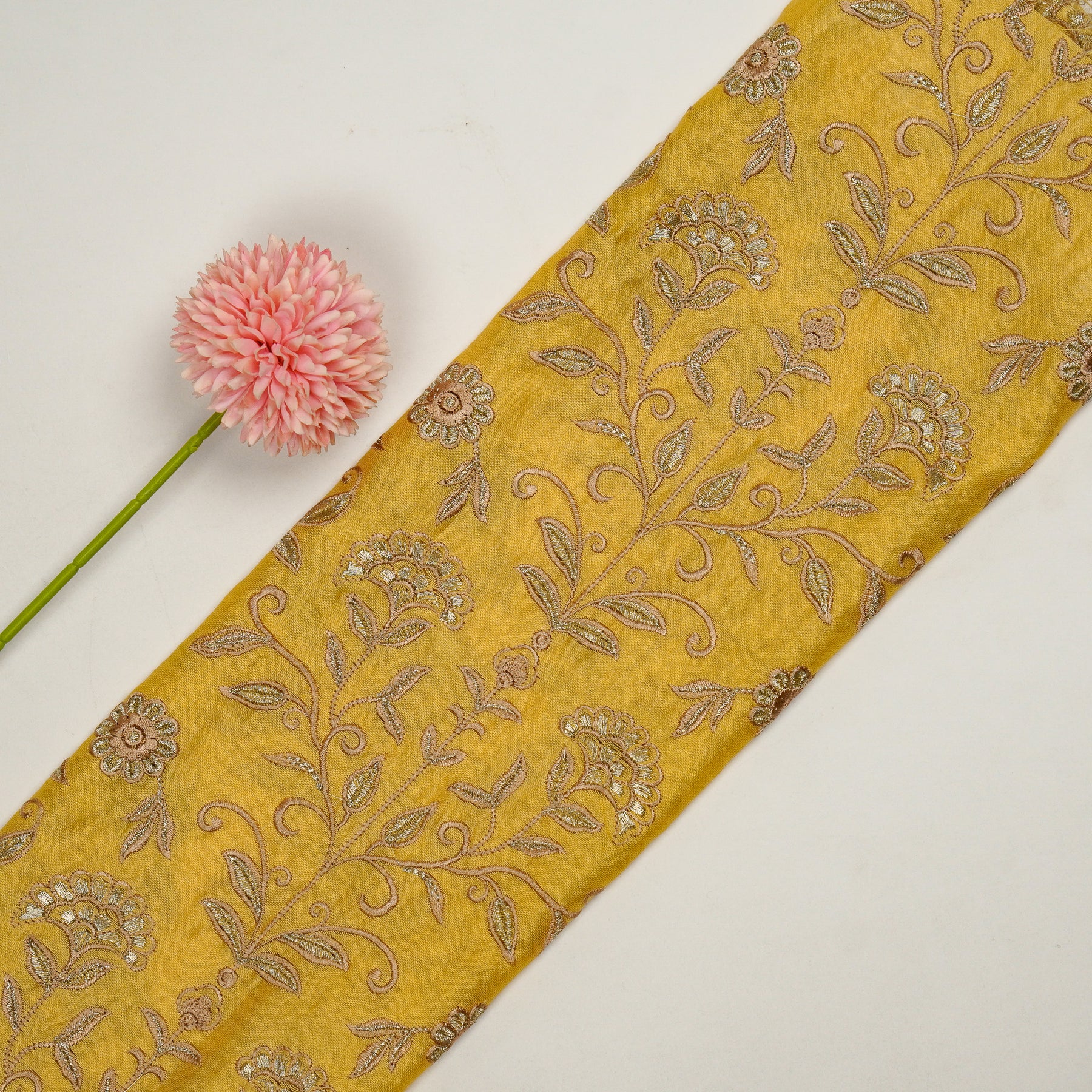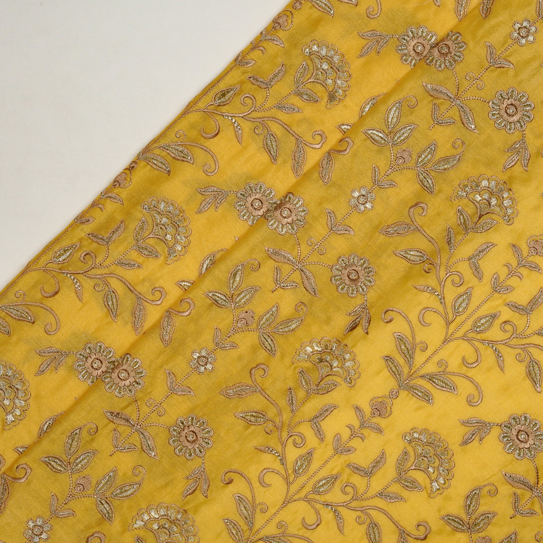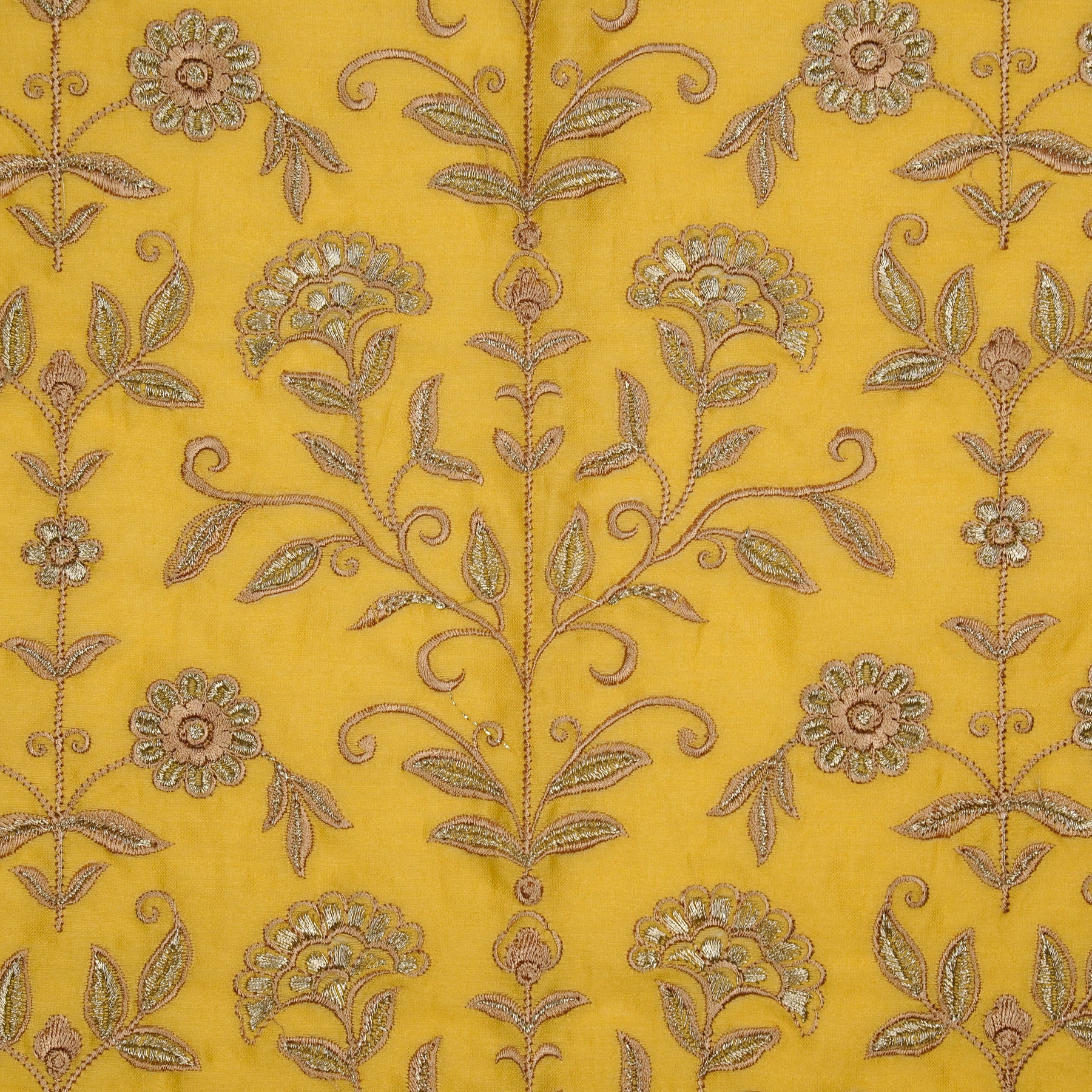 Barika Jaal on Gold Luxe Silk Chanderi Embroidered Fabric