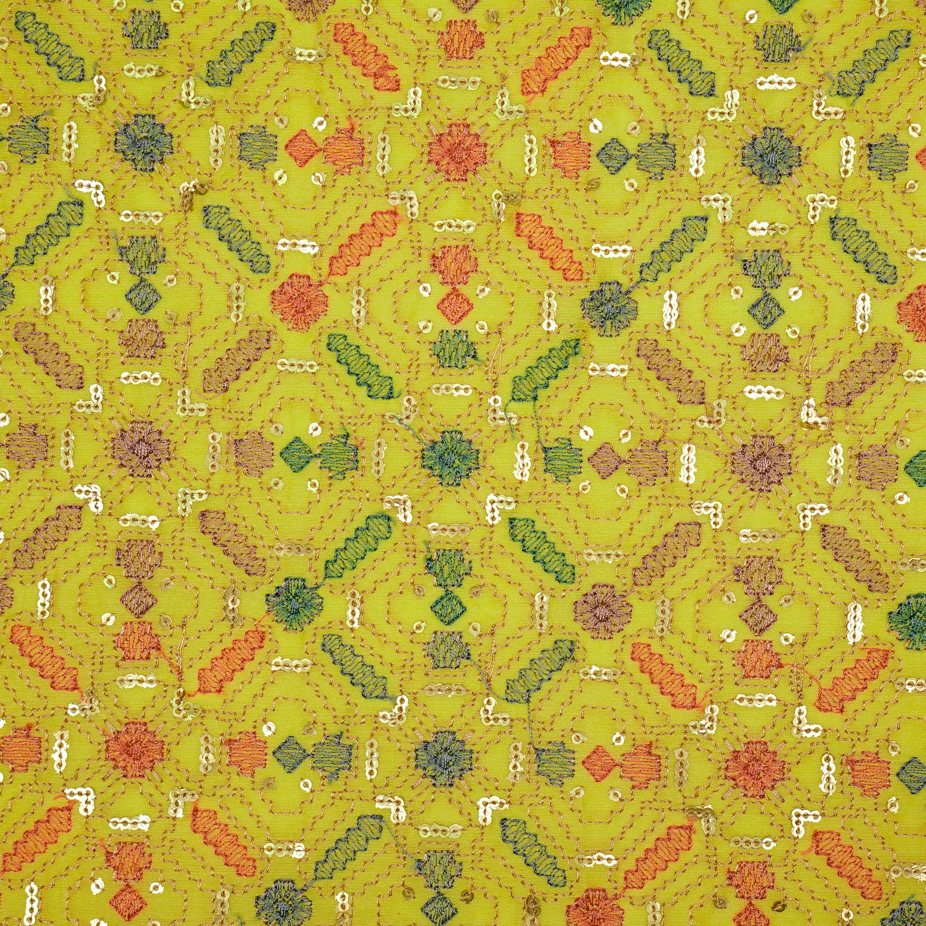 Chitrangi Jaal on Lemon Luxe Silk Chanderi Embroidered Fabric
