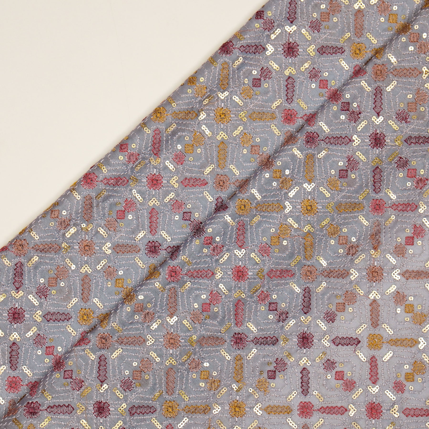Chitrangi Jaal on Mauve Luxe Silk Chanderi Embroidered Fabric