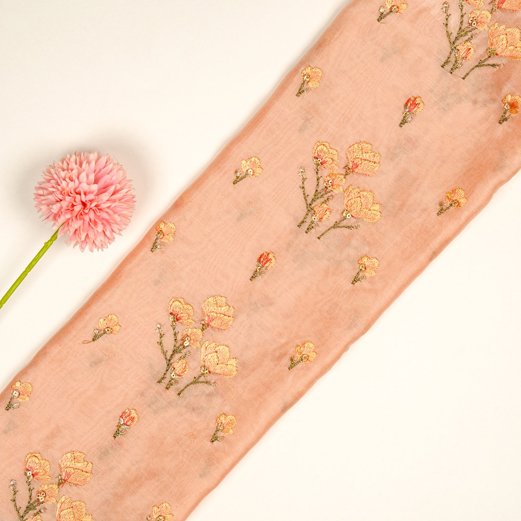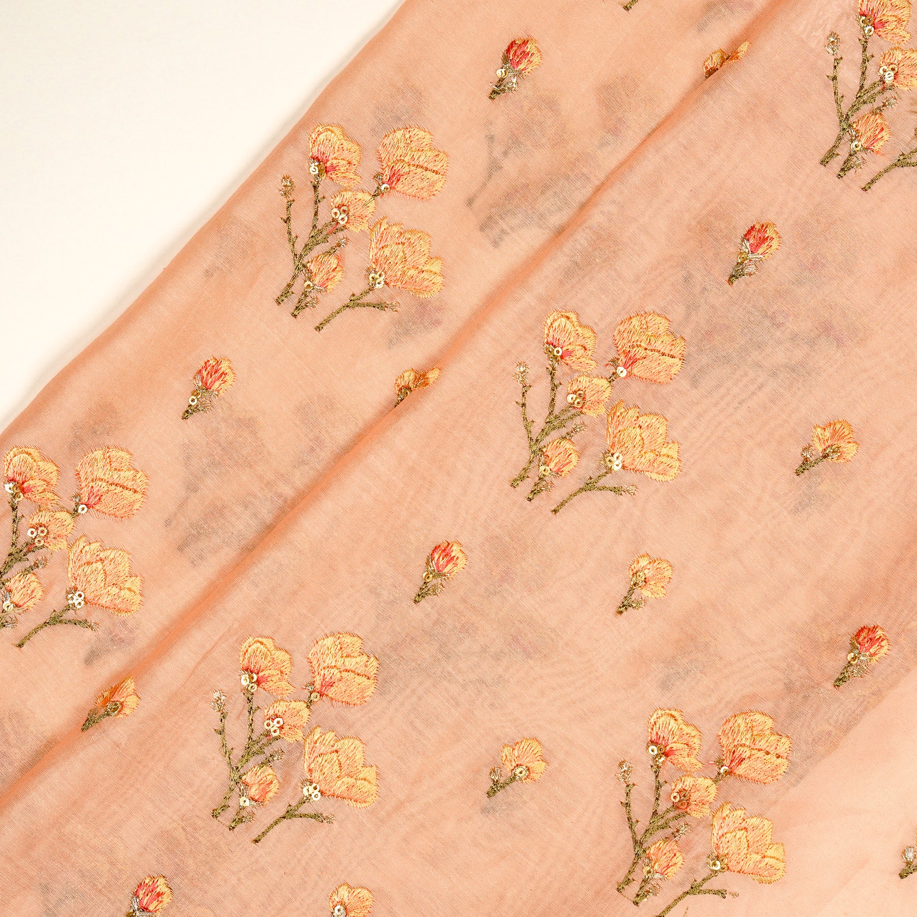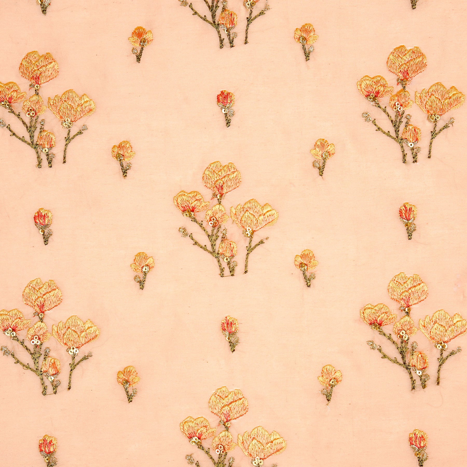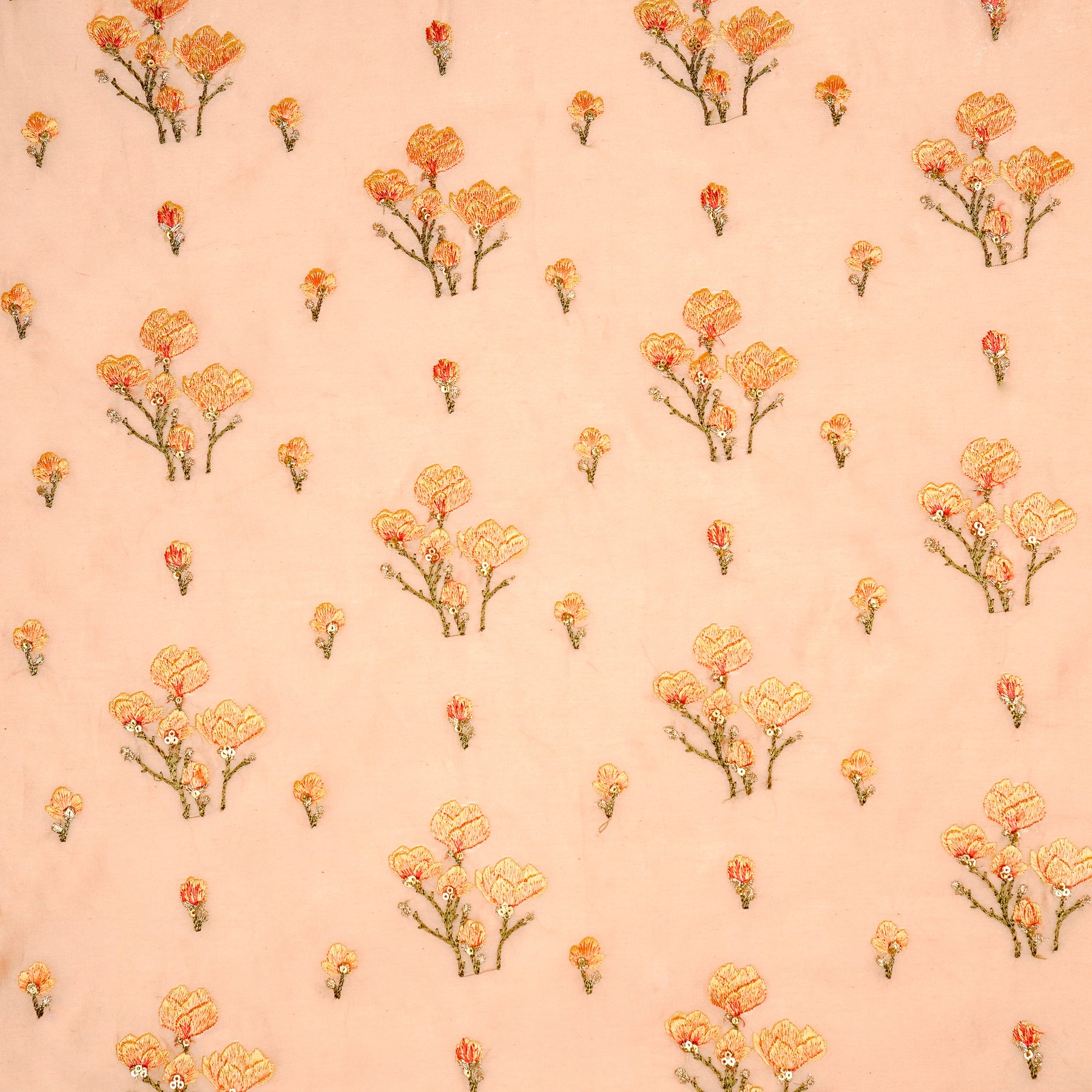 Intisar Buta Buti Mixture on Peach Luxe Silk Chanderi Embroidered Fabric