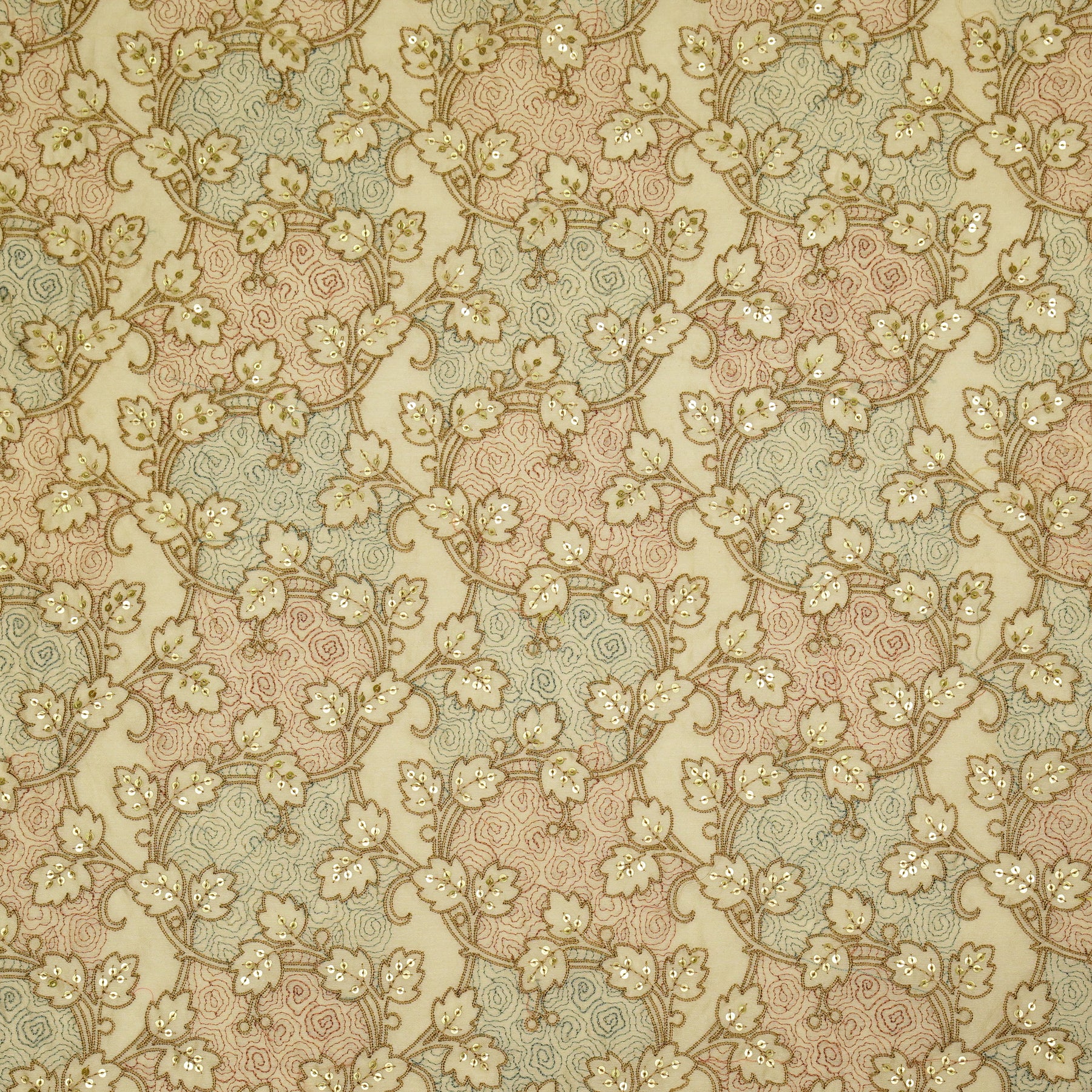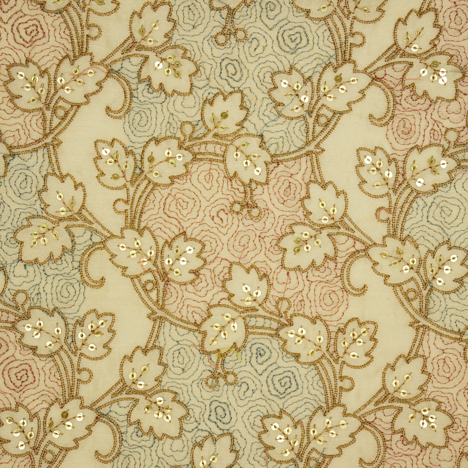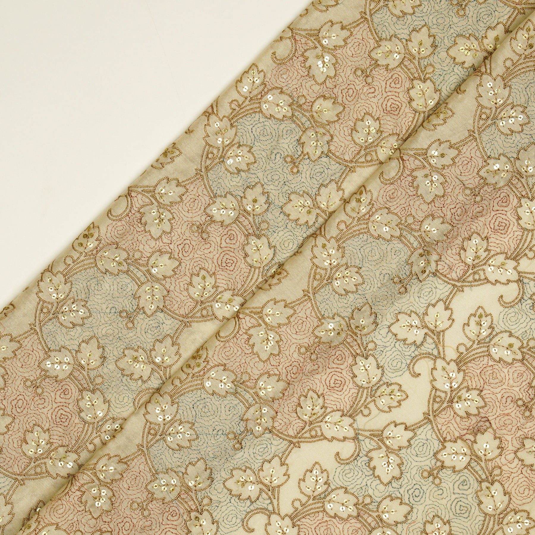 Kashida Jaal on Cream Luxe Silk Chanderi Embroidered Fabric