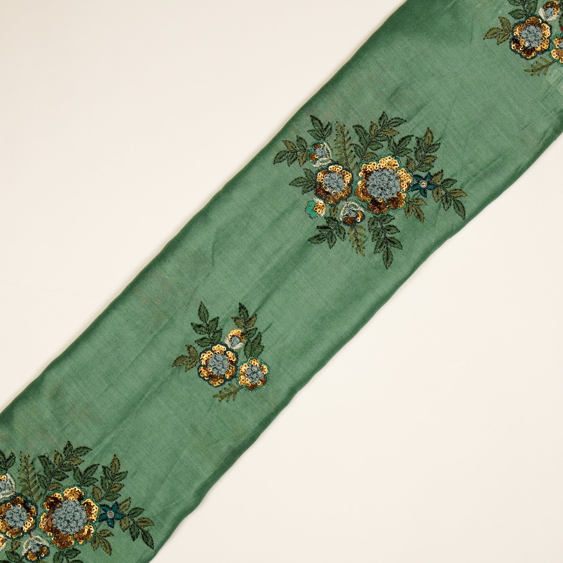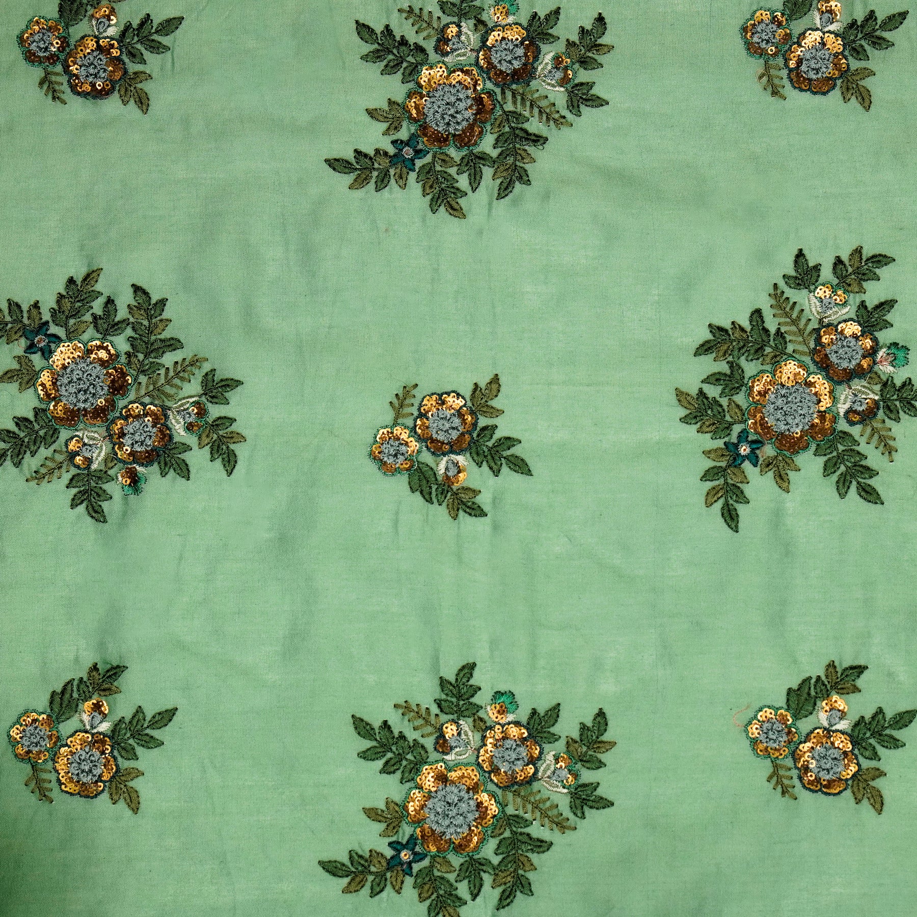 Pushti Buta on Forest Green Luxe Silk Chanderi Embroidered Fabric