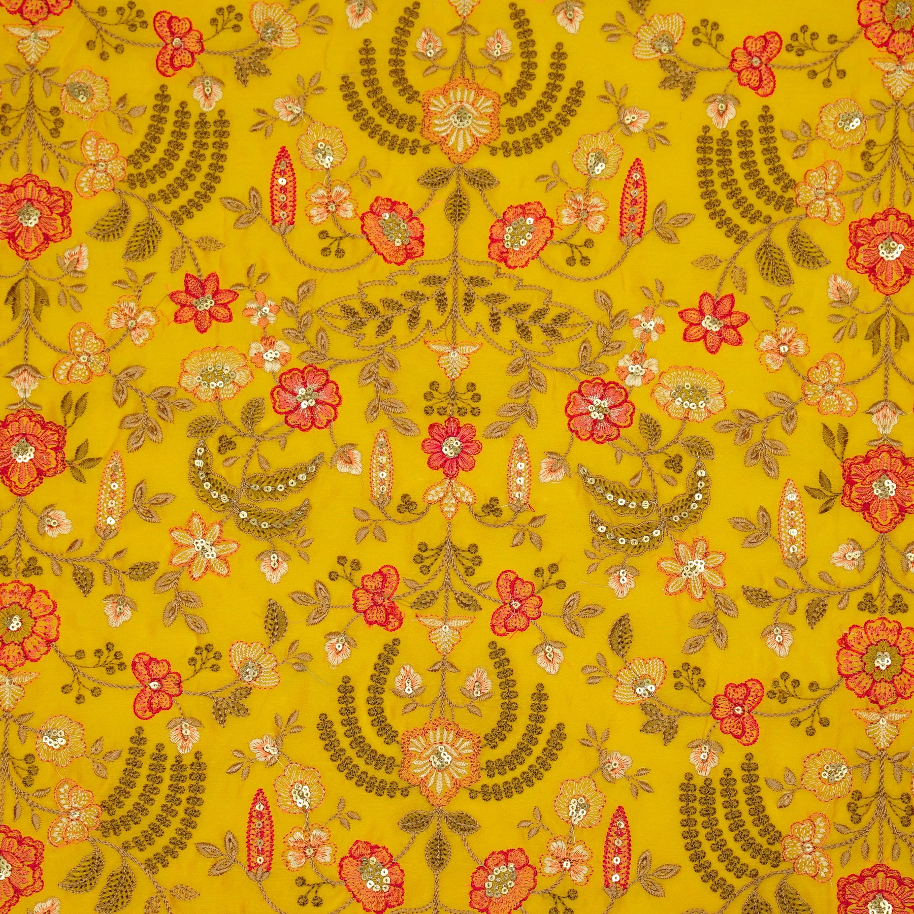 Saharish Jaal on Gold Luxe Silk Chanderi Embroidered Fabric
