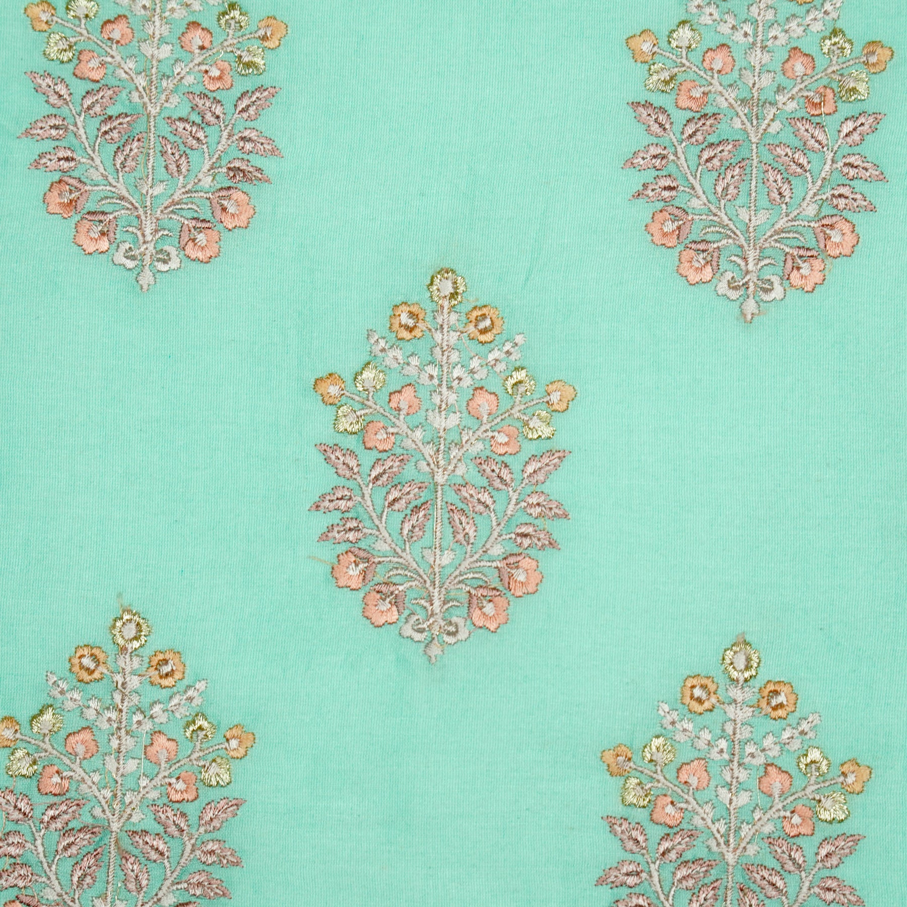 Zaira Buta on Aqua Luxe Silk Chanderi Embroidered Fabric