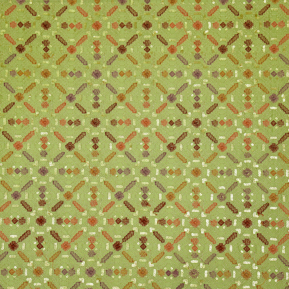 Saharish Jaal on Parrot Green Luxe Silk Chanderi Embroidered Fabric