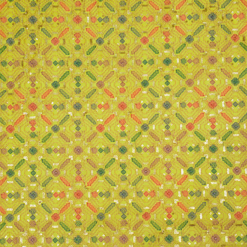 Chitrangi Jaal on Lemon Luxe Silk Chanderi Embroidered Fabric
