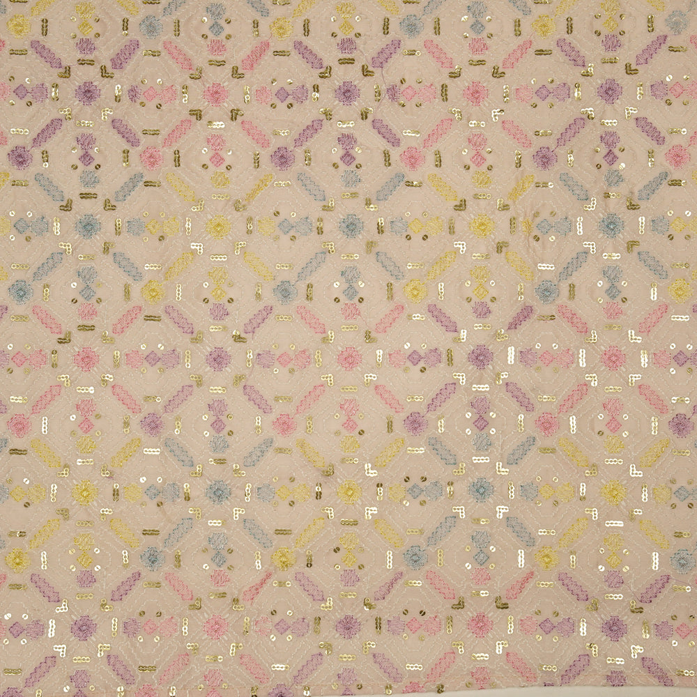 Chitrangi Jaal on Light Blush Luxe Silk Chanderi Embroidered Fabric
