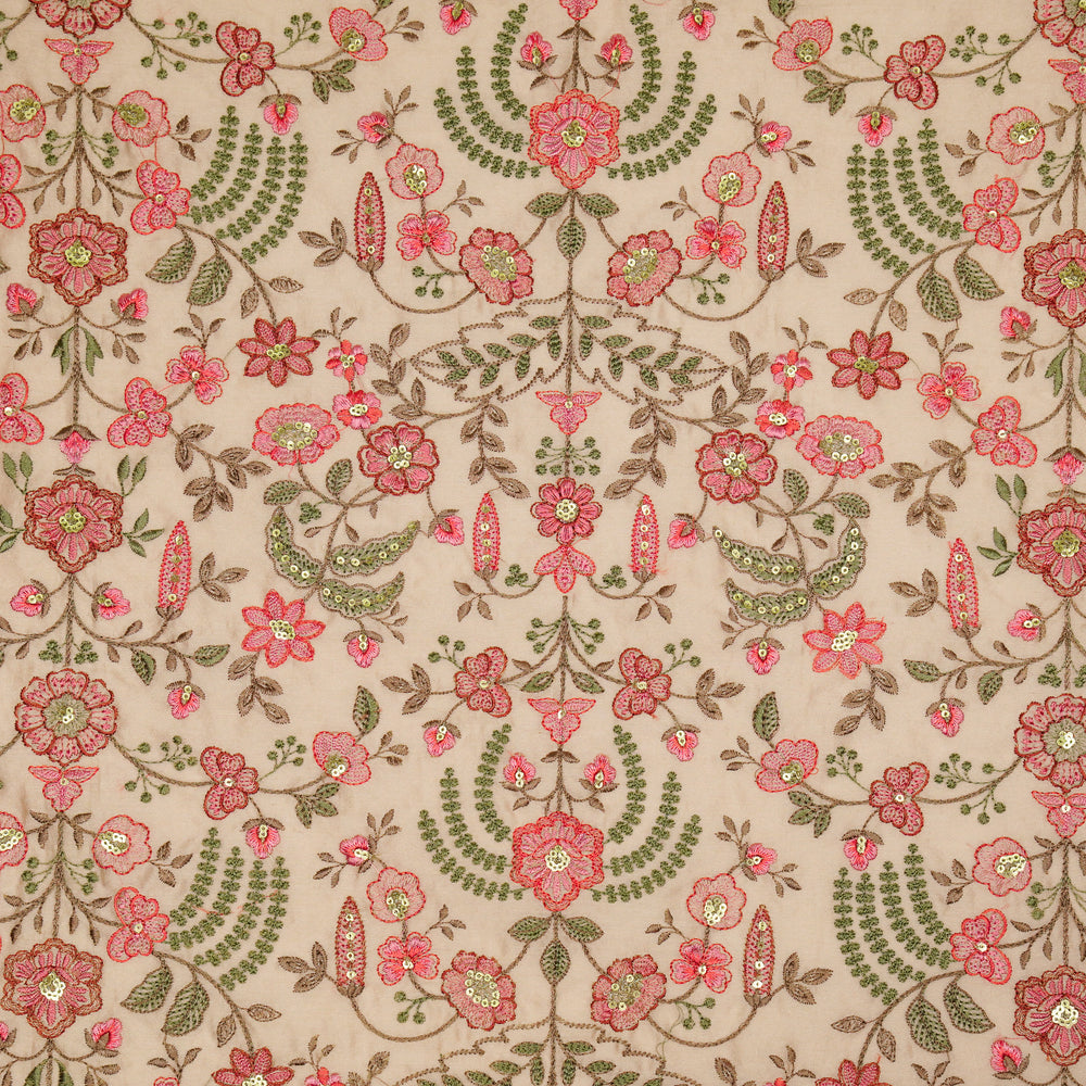 Saharish Jaal on Blush Luxe Silk Chanderi Embroidered Fabric