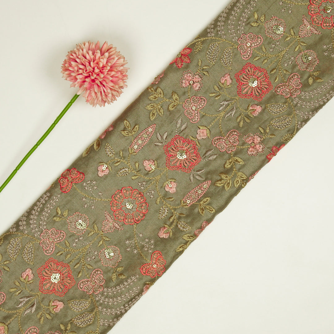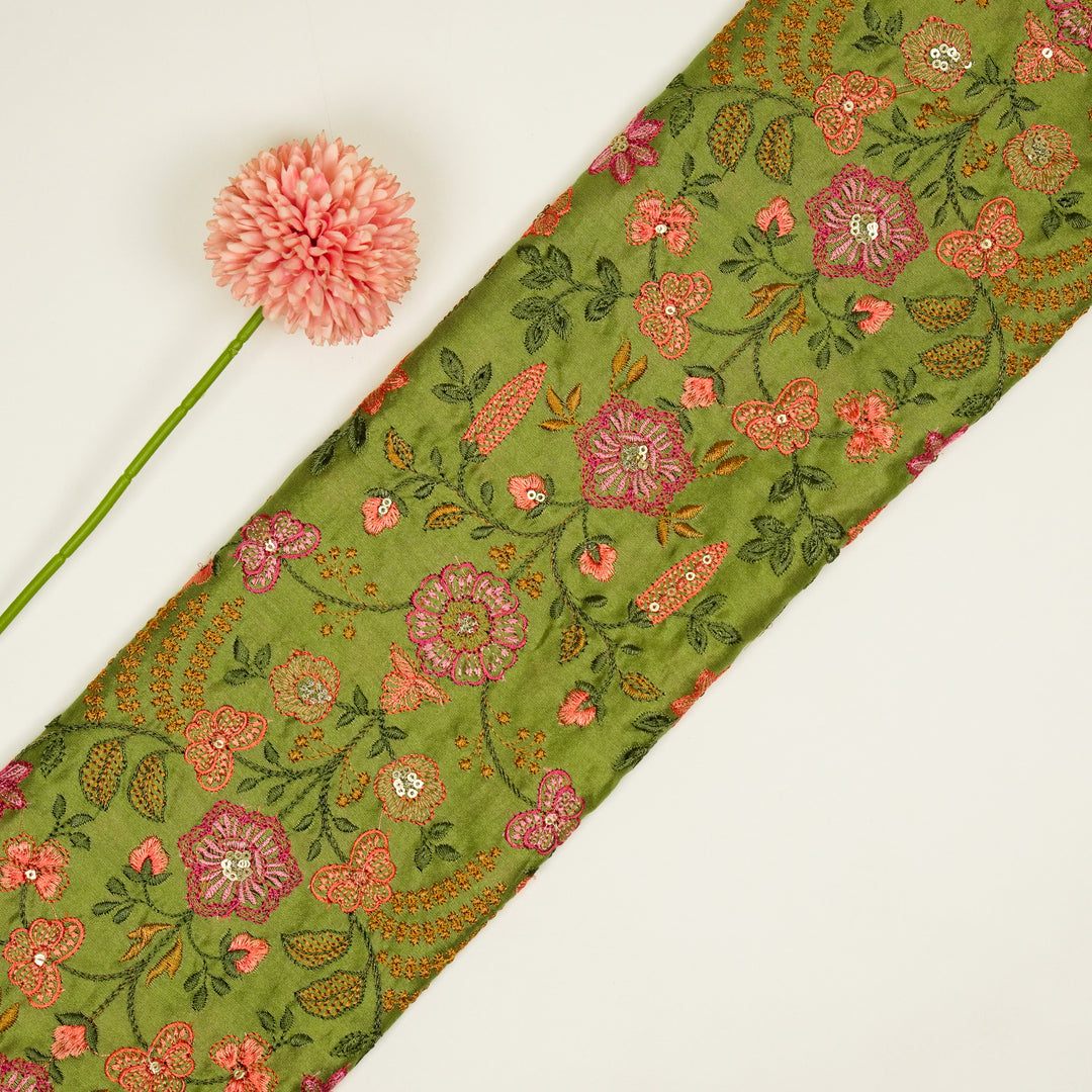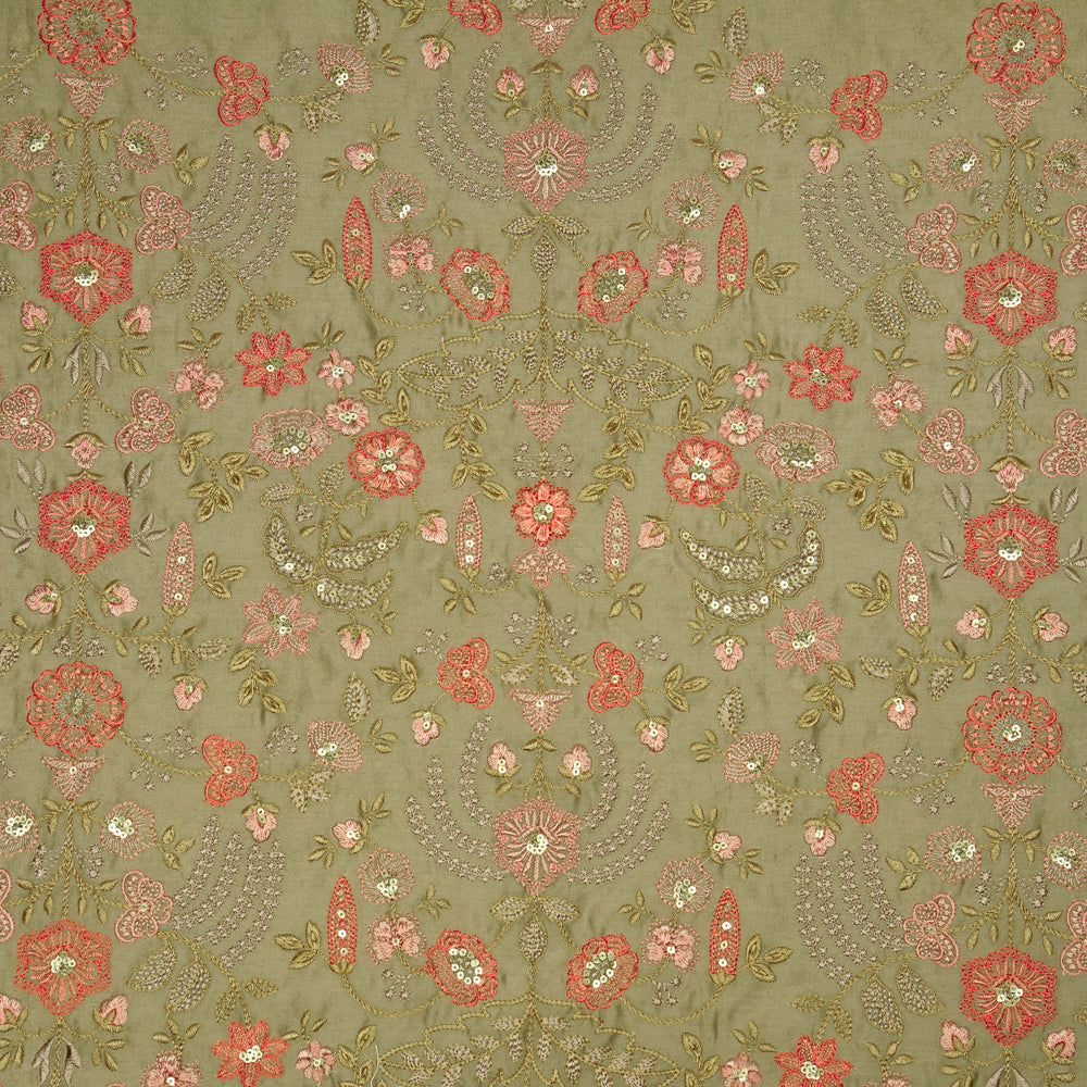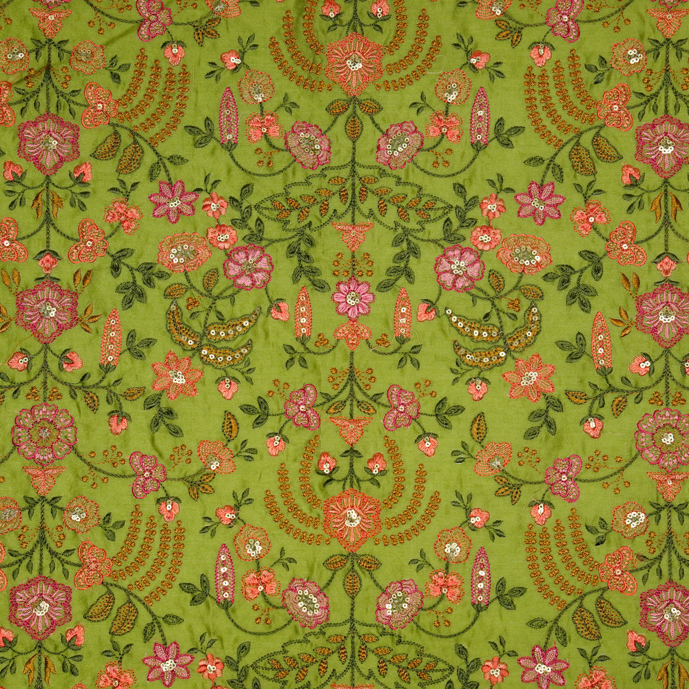 Chitrangi Jaal on Olive Green Luxe Silk Chanderi Embroidered Fabric