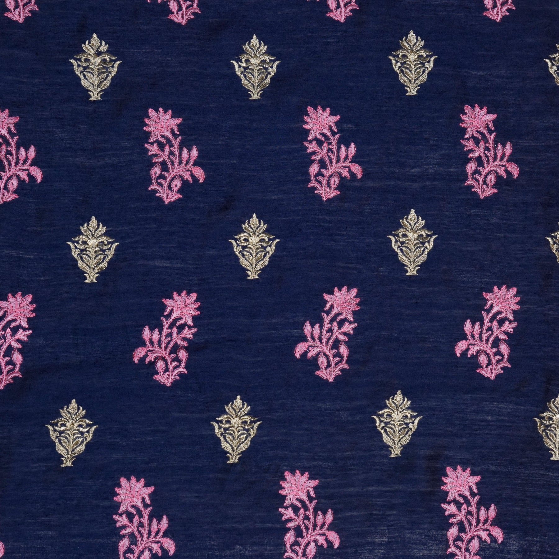 Reeha Buta on Navy Blue Munga Silk Embroidered Fabric
