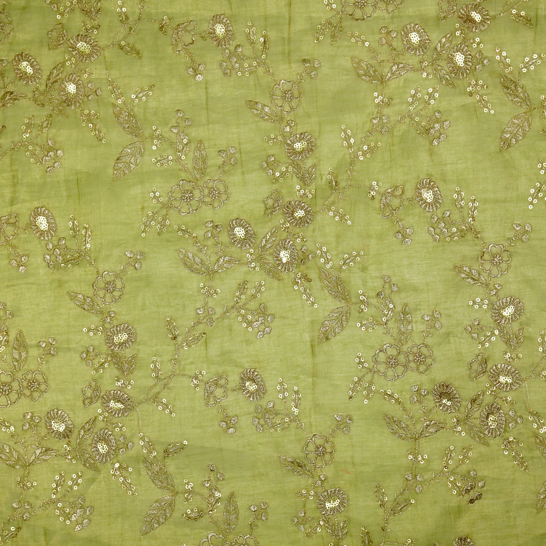 Elira Jaal on Olive Tissue Embroidered Fabric