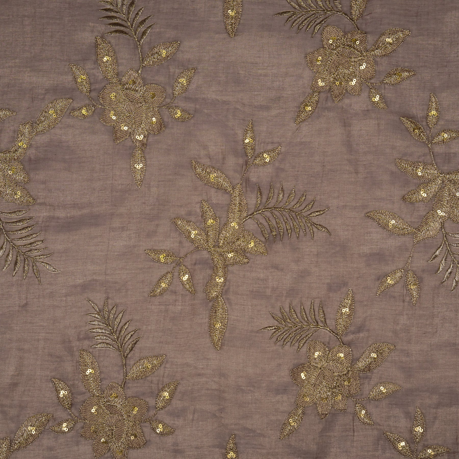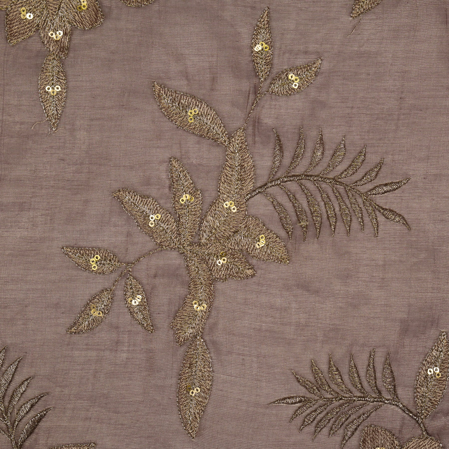 Pallavi Buta on Deep Mauve Tissue Embroidered Fabric